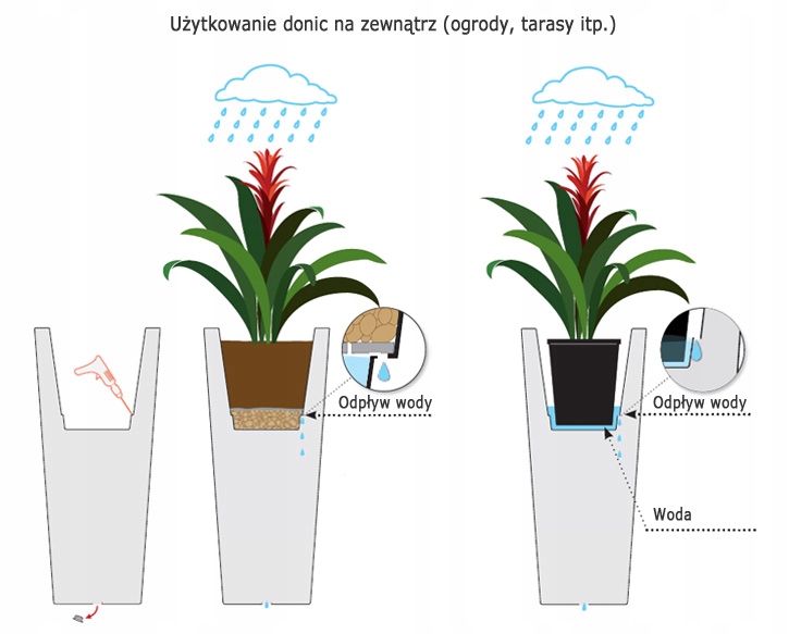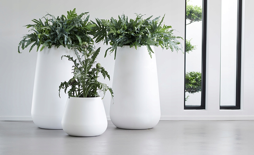 Елегантний, декоративний і дуже легкий, що робить його практичним. Сучасна форма робить квіткові горщики ідеальними для прикраси інтер'єрів квартир і компаній. Стійкість до погодних умов означає, що їх також можна використовувати як горщики для квітів на відкритому повітрі: у садах, на балконах і терасах, на підприємствах і в міських просторах.
