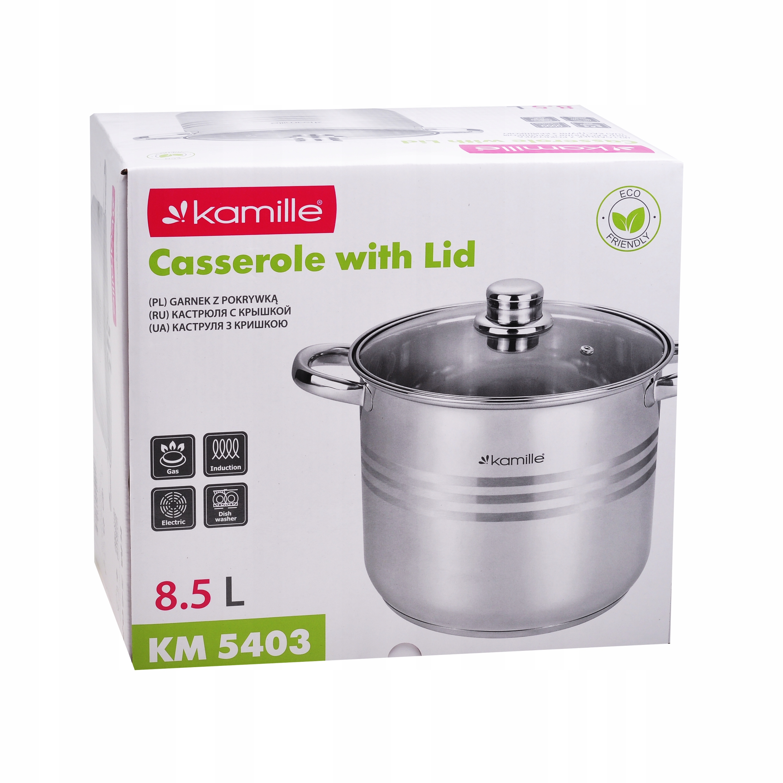 Високий горщик, виготовлений з нержавіючої сталі 8,5 л із індукцією скляної кришки Kamille KM-5403