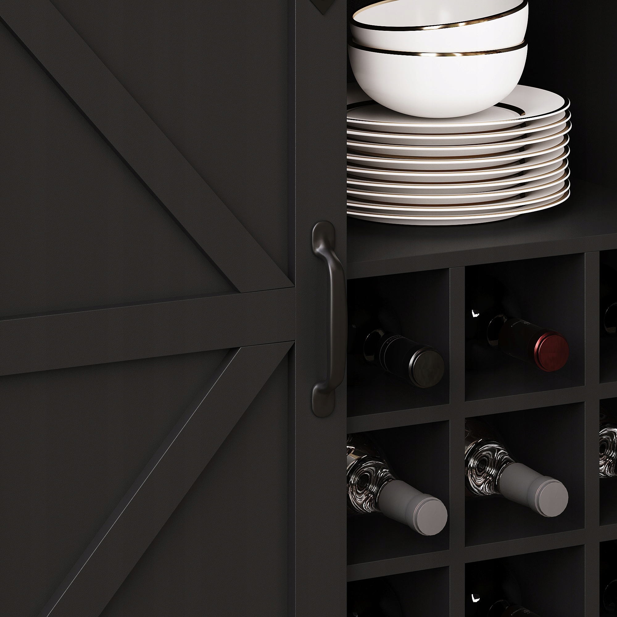 - Розсувні двері, що імітують сарай, тверді та довговічні, ідеально відповідають різним стилям інтер'єру. Ідеально підходить для зберігання вина, книг чи прикрас.