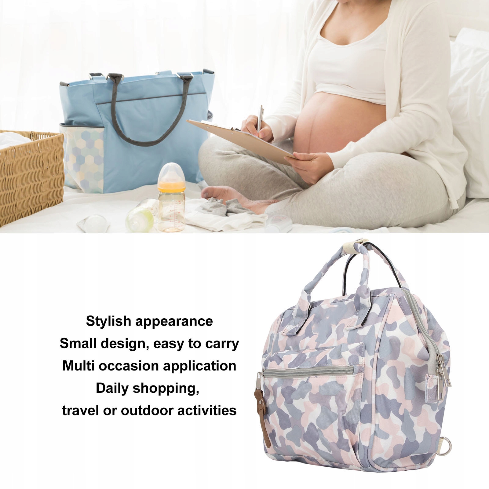 5. Багато випадків: незалежно від того, чи є вони щоденними покупками, подорожуючи чи зовні, ця сумка для підгузників розроблена в невеликому розмірі, простий у носінні для задоволення різних потреб.