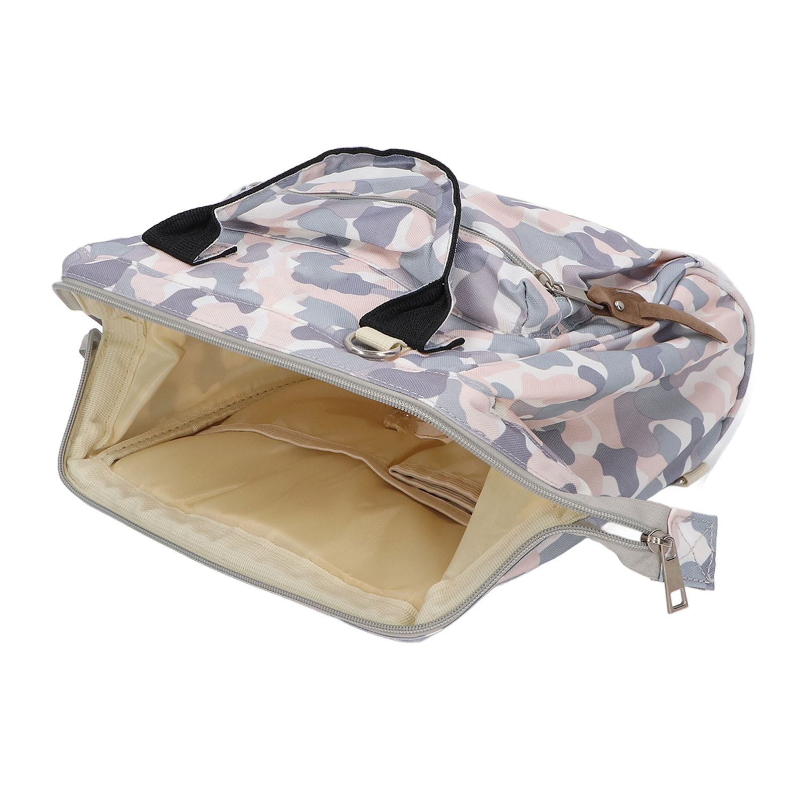 1. Велика ємність: рюкзак підгузника має багато відсіків та кишень для матерів для організації та зберігання предметів, таких як дитячі пляшки, памперси та інші щоденні предмети.