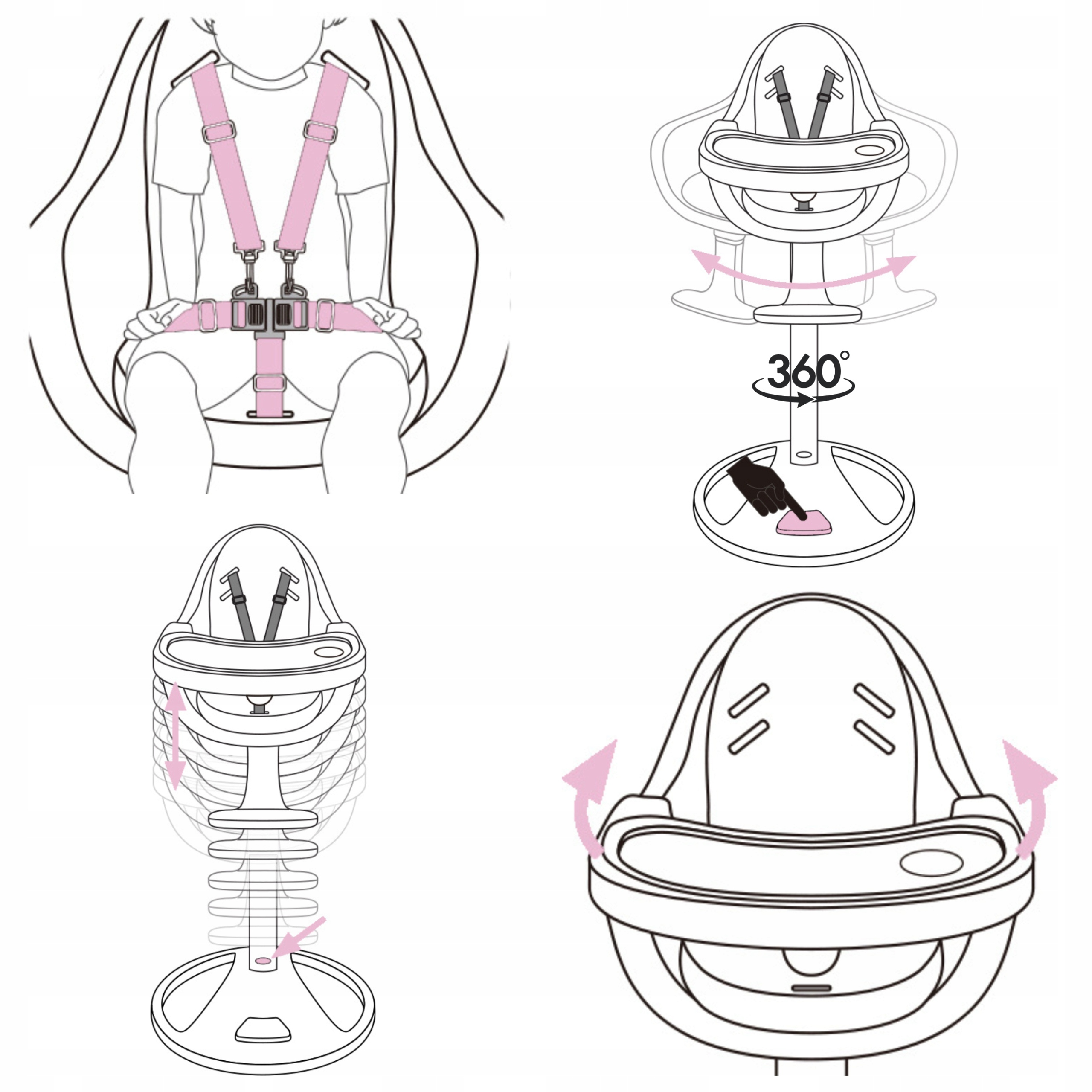 Високий поворотний стільчик для годування з регульованою висотою - чудовий дизайн!