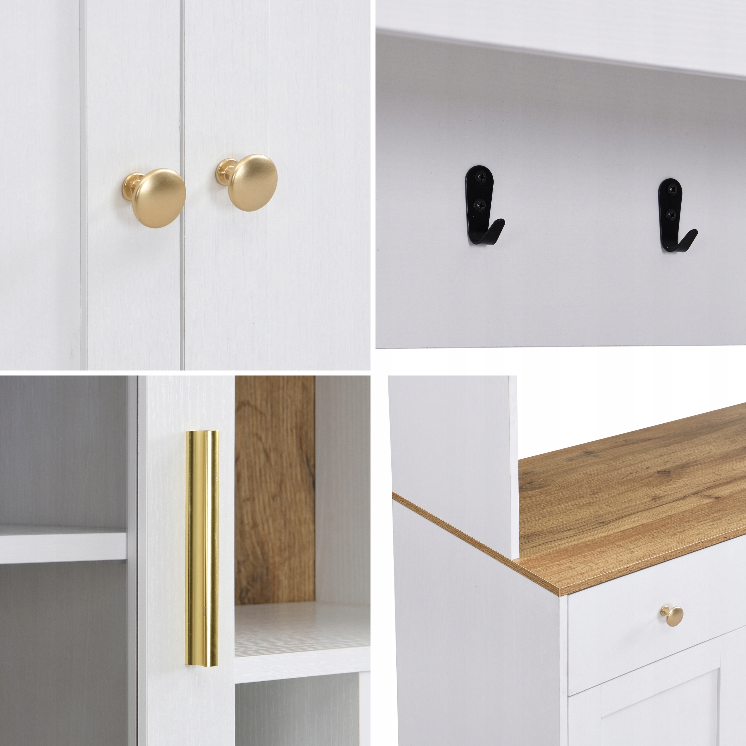 Цей шафа має п’ять дверей, три ящики та відкриті відсіки, забезпечуючи багато місця для зберігання.