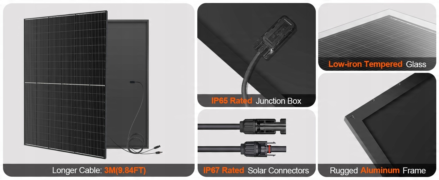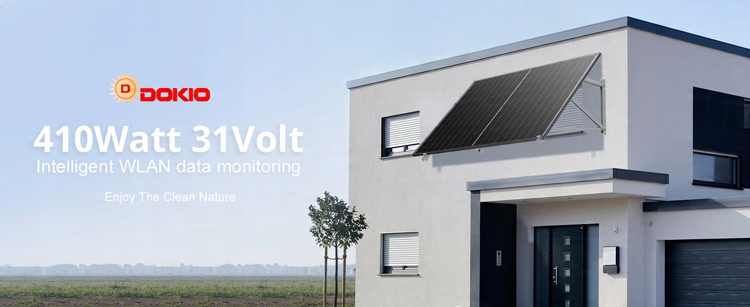 Високоефективна сонячна панель DOKIO потужністю 400 Вт для портативного живлення на даху