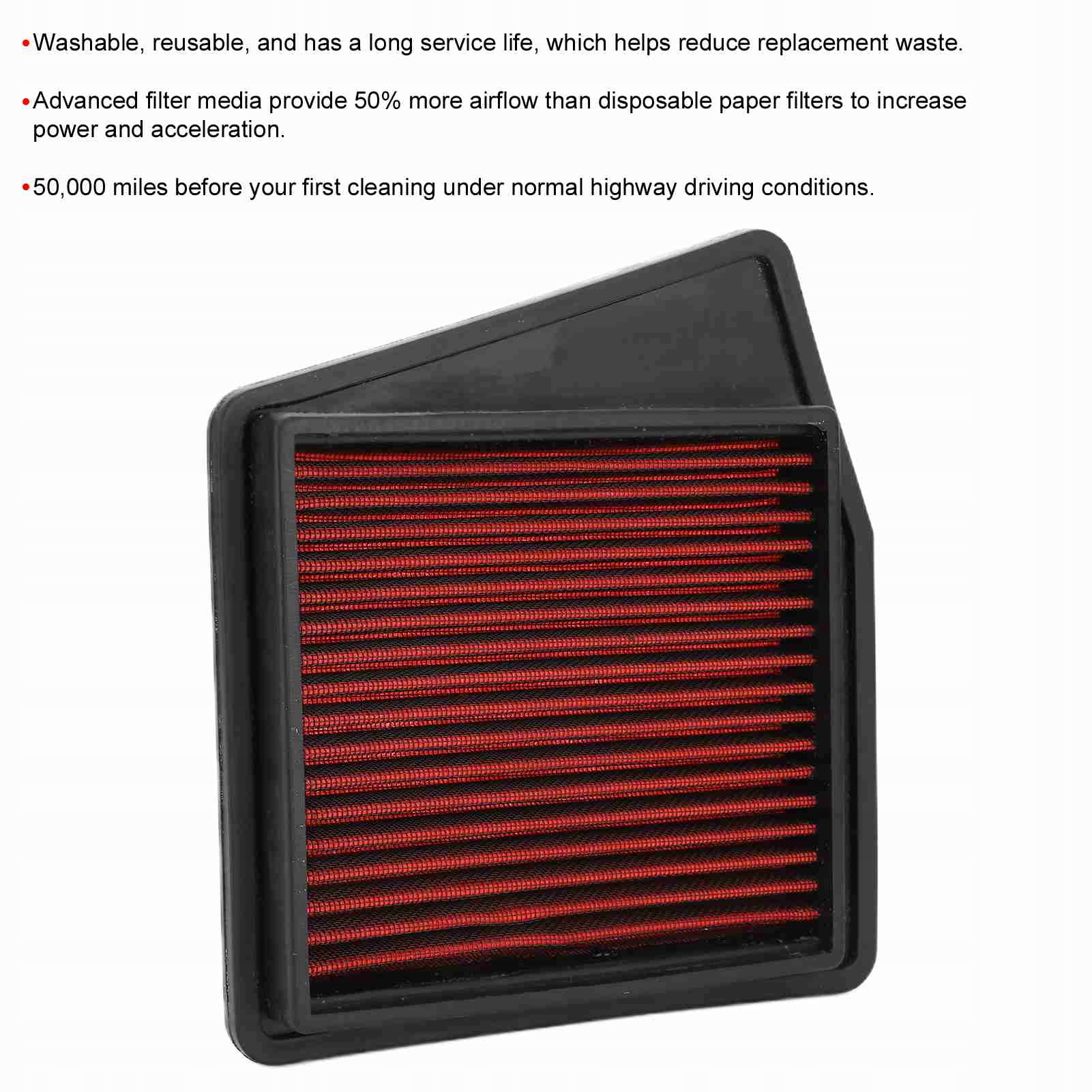 4. ПРОЕКТУВАНА ПОТУЖНІСТЬ: удосконалений фільтруючий матеріал забезпечує на 50% більше повітряного потоку, ніж одноразові паперові фільтри, що підвищує потужність і прискорення.