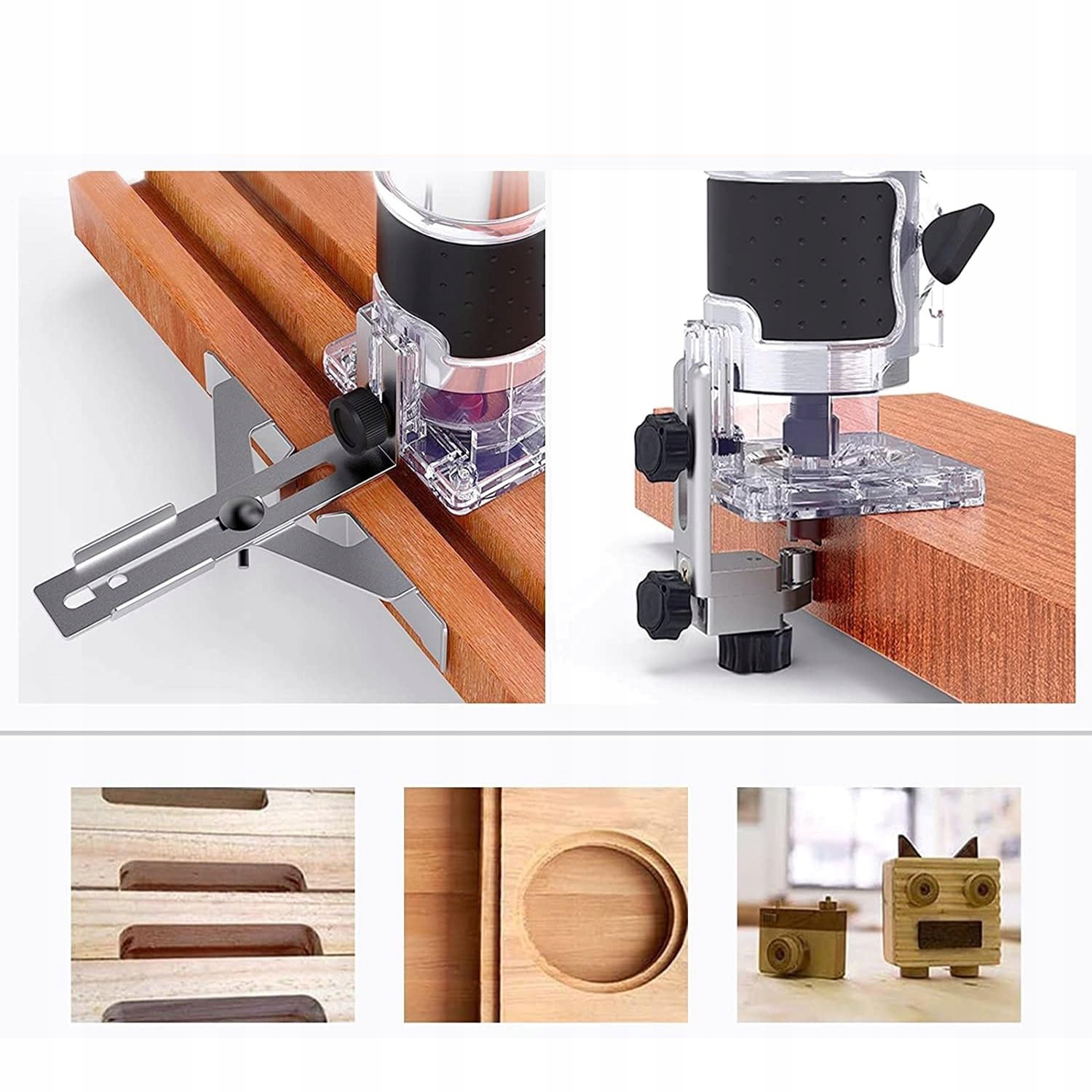 ✅ Легка робота - Тример підходить для загальних умов навколишнього середовища і оснащений відповідним поворотним пристроєм. Прозора кришка керує тремтінням тирсу. Умови обробки можна чітко спостерігати. Прозорий дизайн бази ідеально підходить для легкої ідентифікації точності під час обробки. Шкала чітко видна.