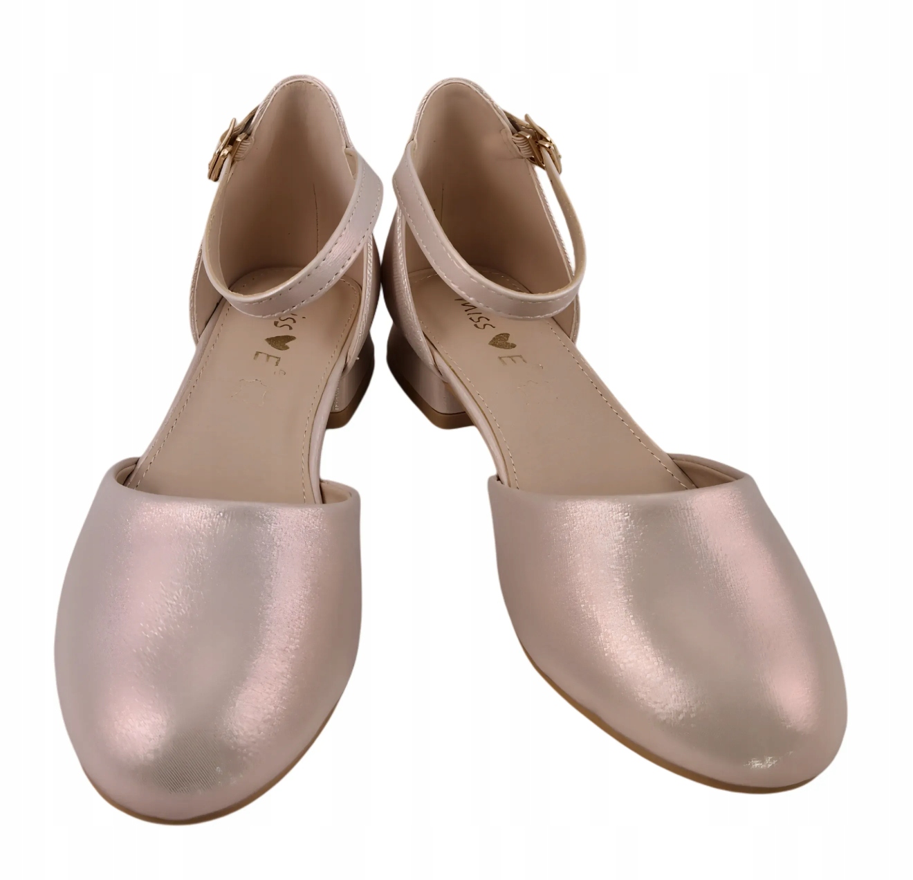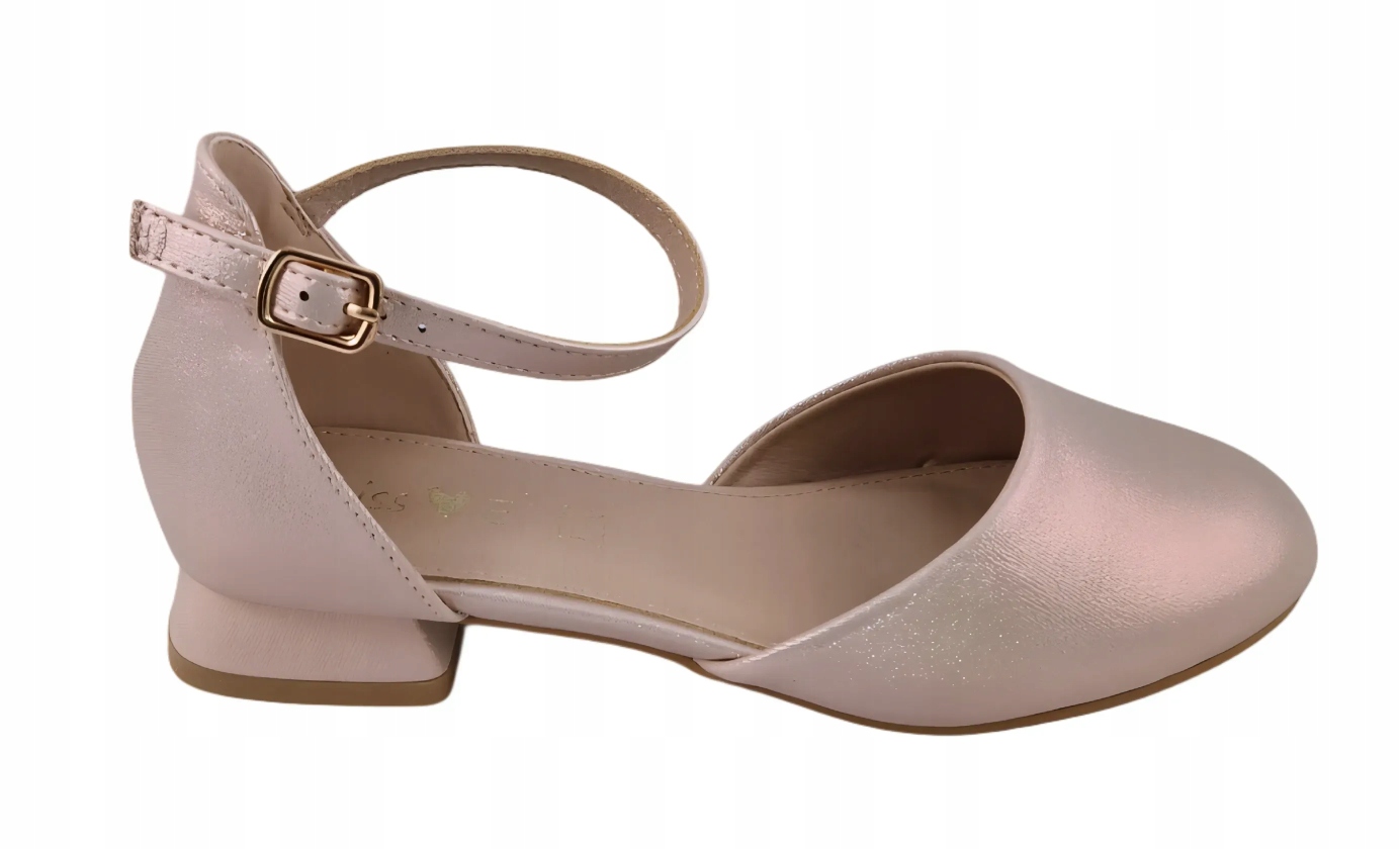 Дівчачі повні босоніжки з бежевим ремінцем, виготовлені з екологічної шкіри. Класичний бежевий колір ідеально підходить для урочистостей, таких як весілля чи шкільні церемонії. Елегантна, злегка блискуча текстура матеріалу додає елегантності та стилю. Невеликий каблук забезпечує легкий підйом стопи, забезпечуючи комфорт і безпеку під час ходьби. Регульований ремінь із золотою пряжкою надійно фіксує ногу та запобігає ковзанню взуття. М'яка шкіряна устілка і підкладка нейтрального бежевого кольору - приємні для ніг навіть при тривалому носінні.