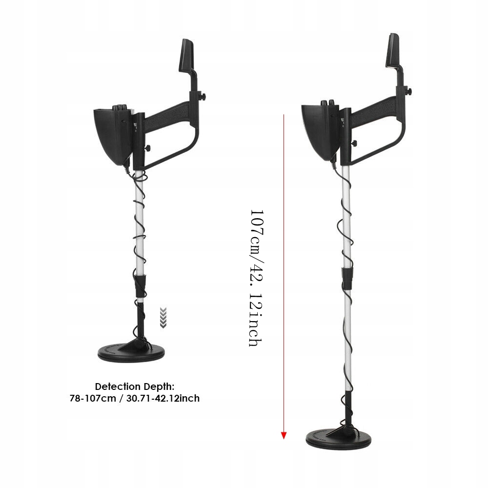 🪙🪙🪙 [Хороший вибір для занять спортом на відкритому повітрі] - Довжину детектора можна регулювати для зручності в експлуатації (макс. 107 см; мін.: 78 см). Детектор є знімним і портативним, а також має універсальний роз’єм для навушників, до якого можна під’єднати навушники (у комплекті) і налаштувати гучність відповідно до різних умов навколишнього середовища.