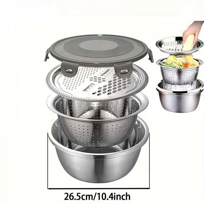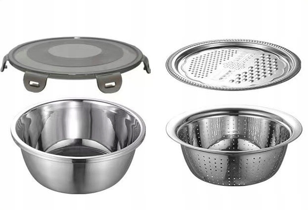 💧-Набір містить чотири практичні елементи: миску, ситечко, терку та кришку, які легко відповідають різноманітним потребам.