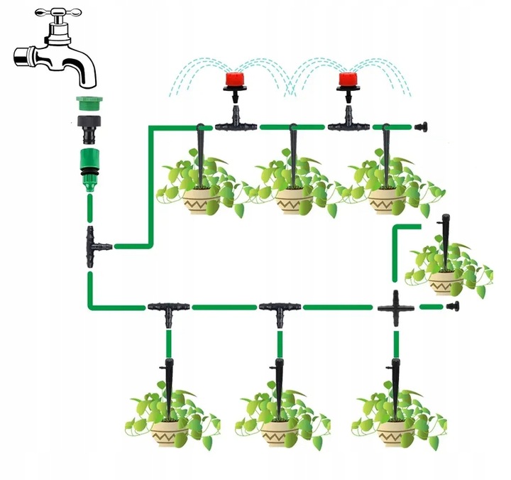 ✔ -standard Thread та сумісністю з трубами магазину зрошення. Крім того, вони сумісні з трубами з діаметром 4 мм/7 мм, що сприяє інтеграції з існуючою інфраструктурою. Їх конфігурація інтуїтивна, що дозволяє швидко активувати зрошувальну систему навіть без попереднього досвіду. Завдяки цьому користувач може самостійно встановлювати та налаштувати систему зрошення, заощаджуючи час та гроші на зовнішніх послугах.