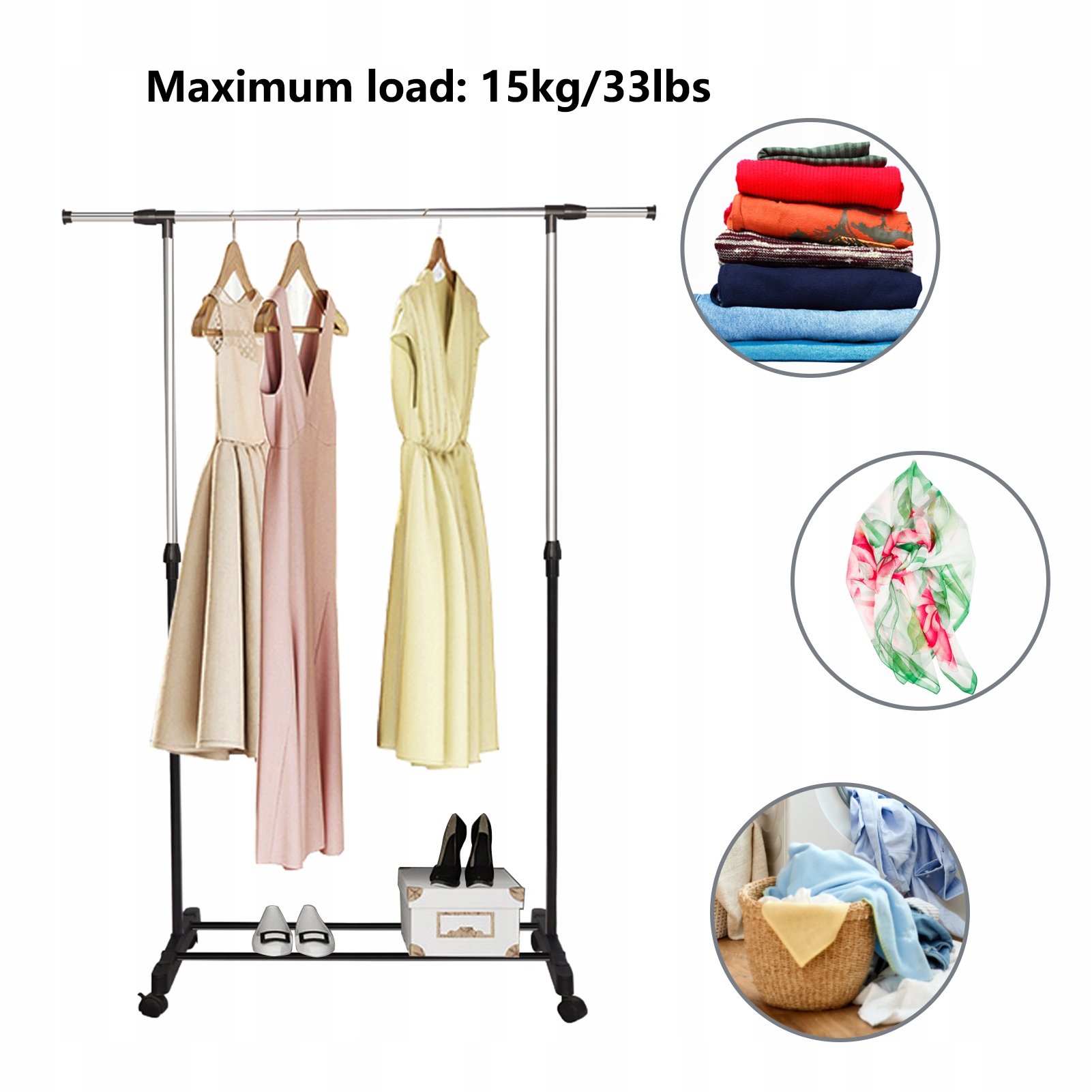 ✨by Переваги хорошої навантажувальної, високої міцності та міцної, ця стійка для сушіння білизни досить жорстка, щоб завантажити максимальну вагу 33 фунтів, щоб ви могли використовувати його для повіслення та сухого одягу, рушника, ковдри тощо. Більше того, поставляється з нижніми поличками, це також допомагає зберігати та сухе взуття. Ще одна кімната. Це обов'язково для будь-якого будинку. Відрегулюйте висоту нашої стійки для одягу за допомогою прямих ручок від 95 см-146 см. Відрегулюйте висоту відповідно до своїх потреб. Гуртожиток, офіс тощо