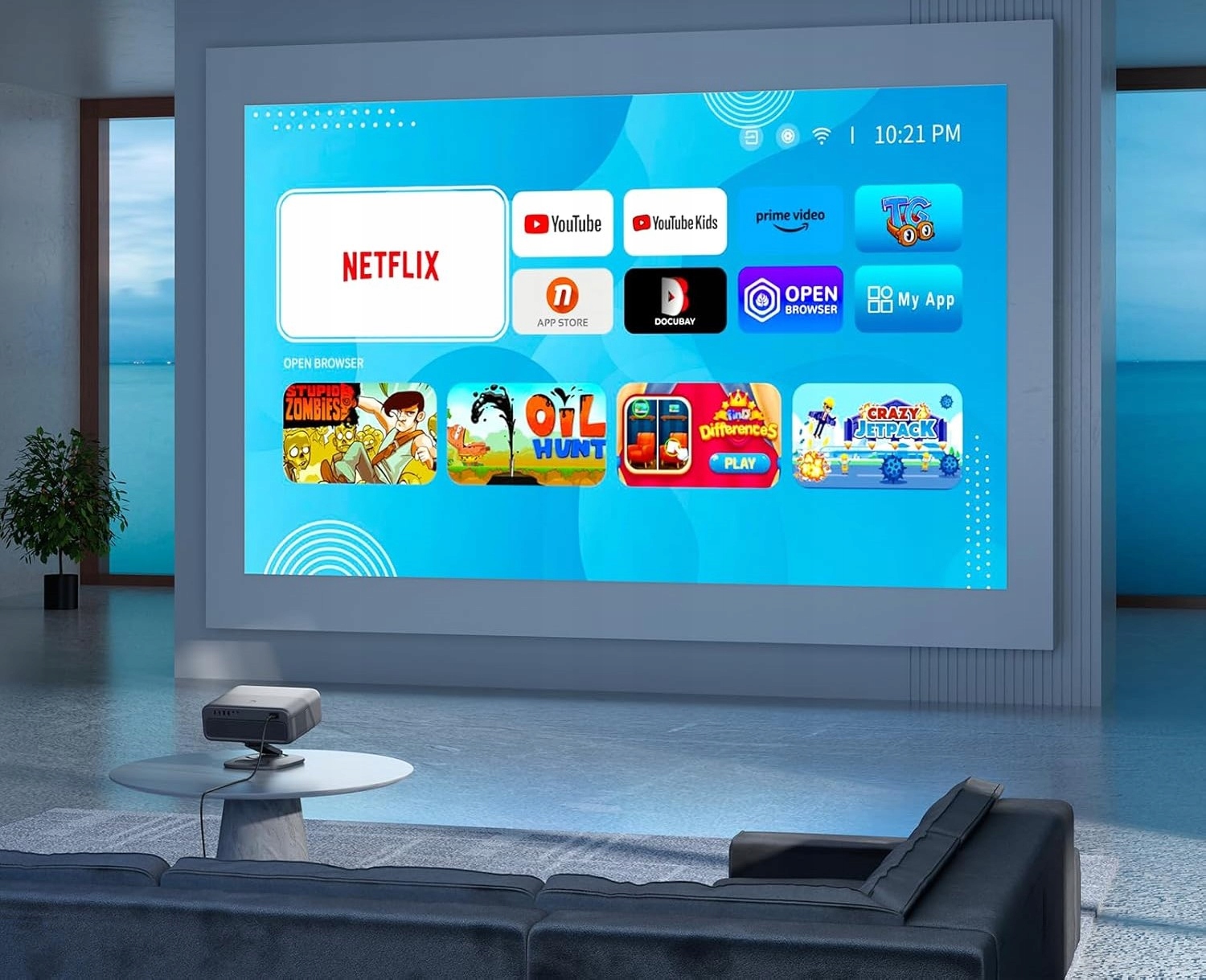 - Які програми підтримуються: проектор VISSPL H10 постачається з попередньо встановленими Netflix, YouTube, YouTube Kids і Prime Video. Щоб знайти більше програм, відвідайте App Store і відкрийте браузер. Примітка. Через обмеження YouTube TV ця програма наразі не підтримується цим проектором.