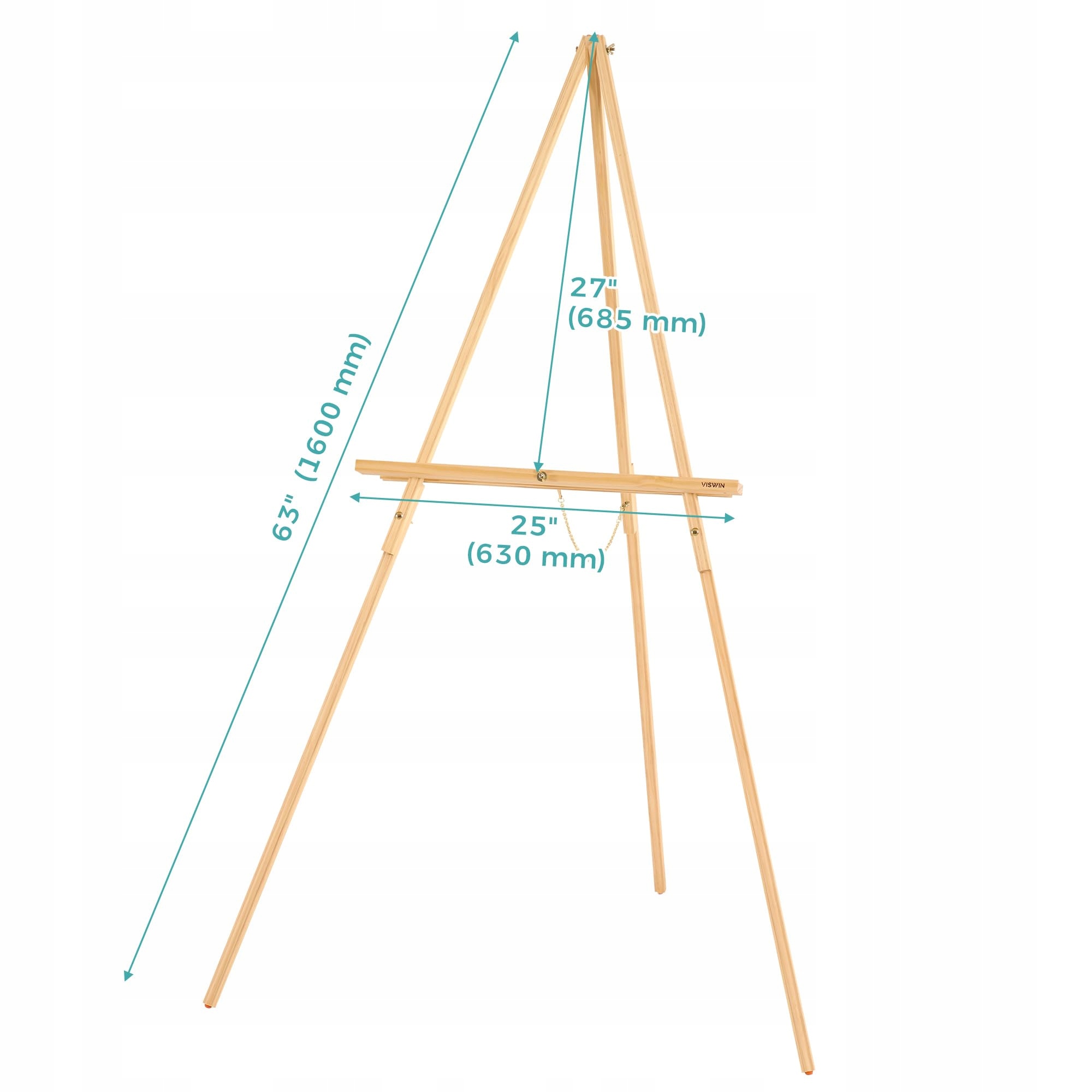 Стійка та міцна підставка для дисплея має розмір 34" у ширину та 63" у висоту. Виготовлена з деревини сосни найвищої якості та високоякісної фурнітури, має стабільну структуру та довговічність. Цей дисплейний стенд має задню металеву опорну ланцюжок для додаткової стабільності. Кут можна регулювати. Протиковзкі гумові ніжки утримують підставку під мольберт на місці та забезпечують стійкість на будь-якій поверхні. Легкий і зручний для транспортування, це рішення для подорожей, ідеальне для подій будь-якого масштабу.