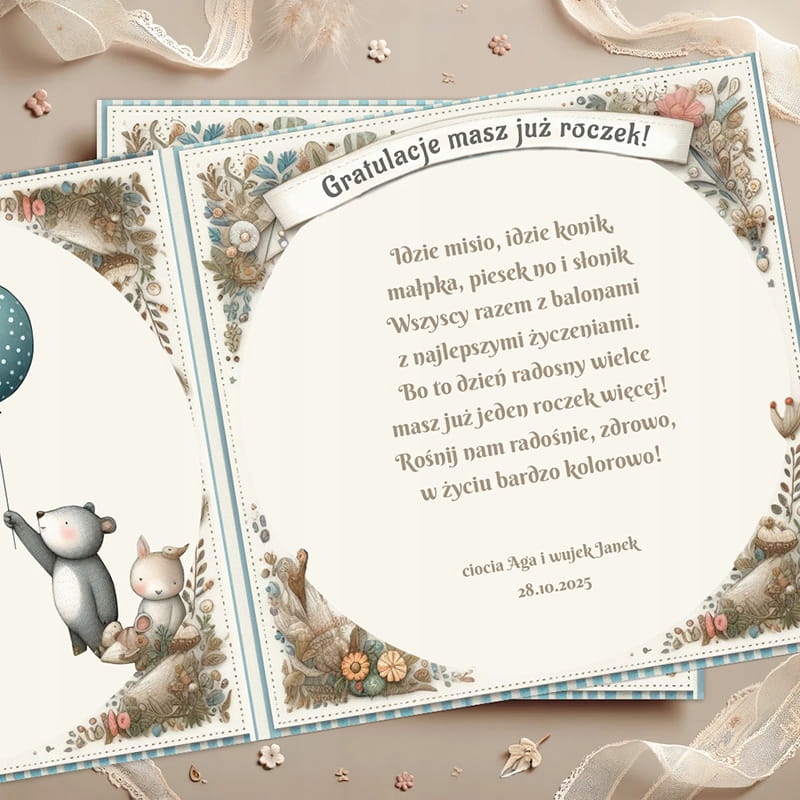 На ній ми розмістимо ім'я дитини. Всередині листівки під побажаннями поставимо підпис і дату святкування.