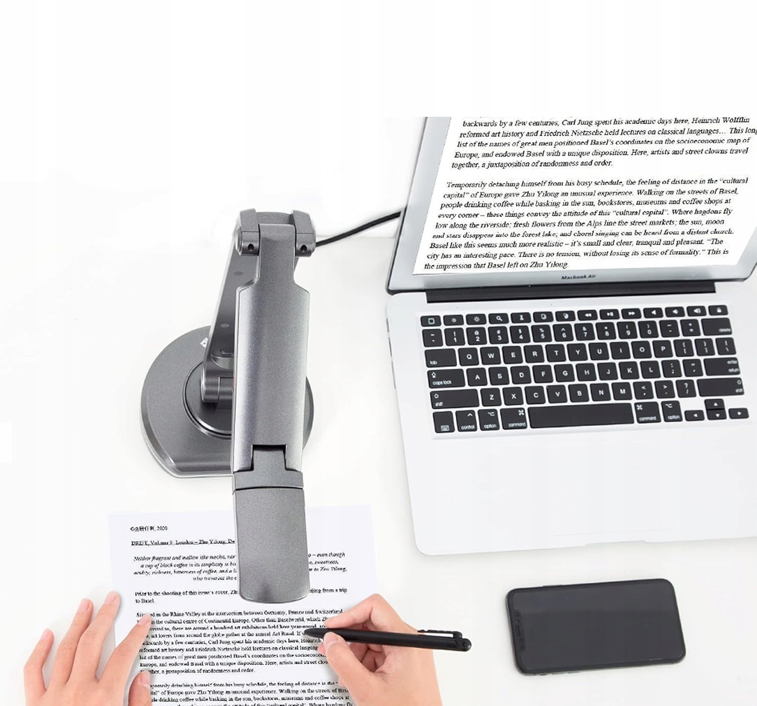 - Гнучка рука: 5 суглобів у 2 руках дозволяють захоплювати зображення з різних кутів, покриваючи область до формату A3.