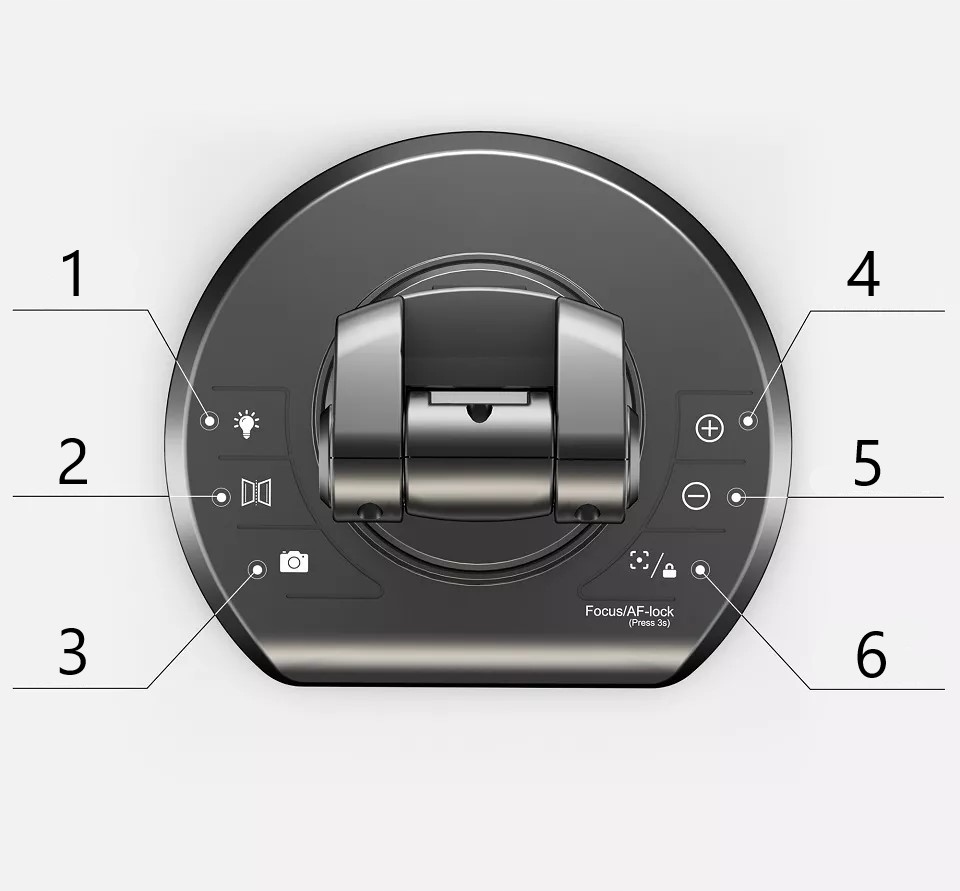 - Кнопки сенсорних кнопок: 6 кнопок на основі пристрою дозволяють швидко керувати функціями, такими як масштаб, затвора або дзеркальне відбиття.