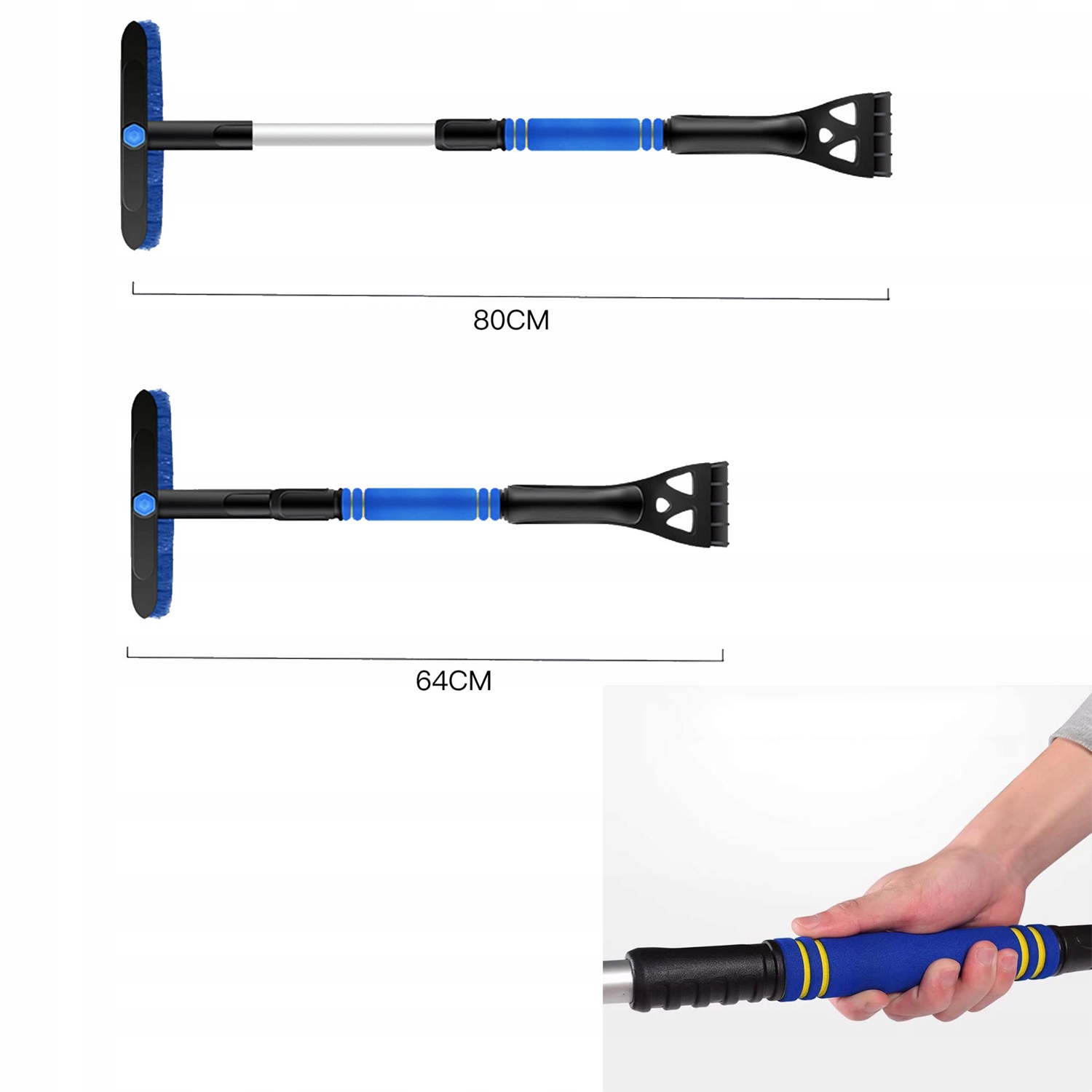 ❄️Щітка для снігу, яка не дряпається та розширюється: оснащена спеціальною м’якою насадкою для щітки, яка створює щітку без подряпин. Скребок для снігу висувається на висоту 80 см, дозволяючи дістатися до важкодоступних снігових кишень.