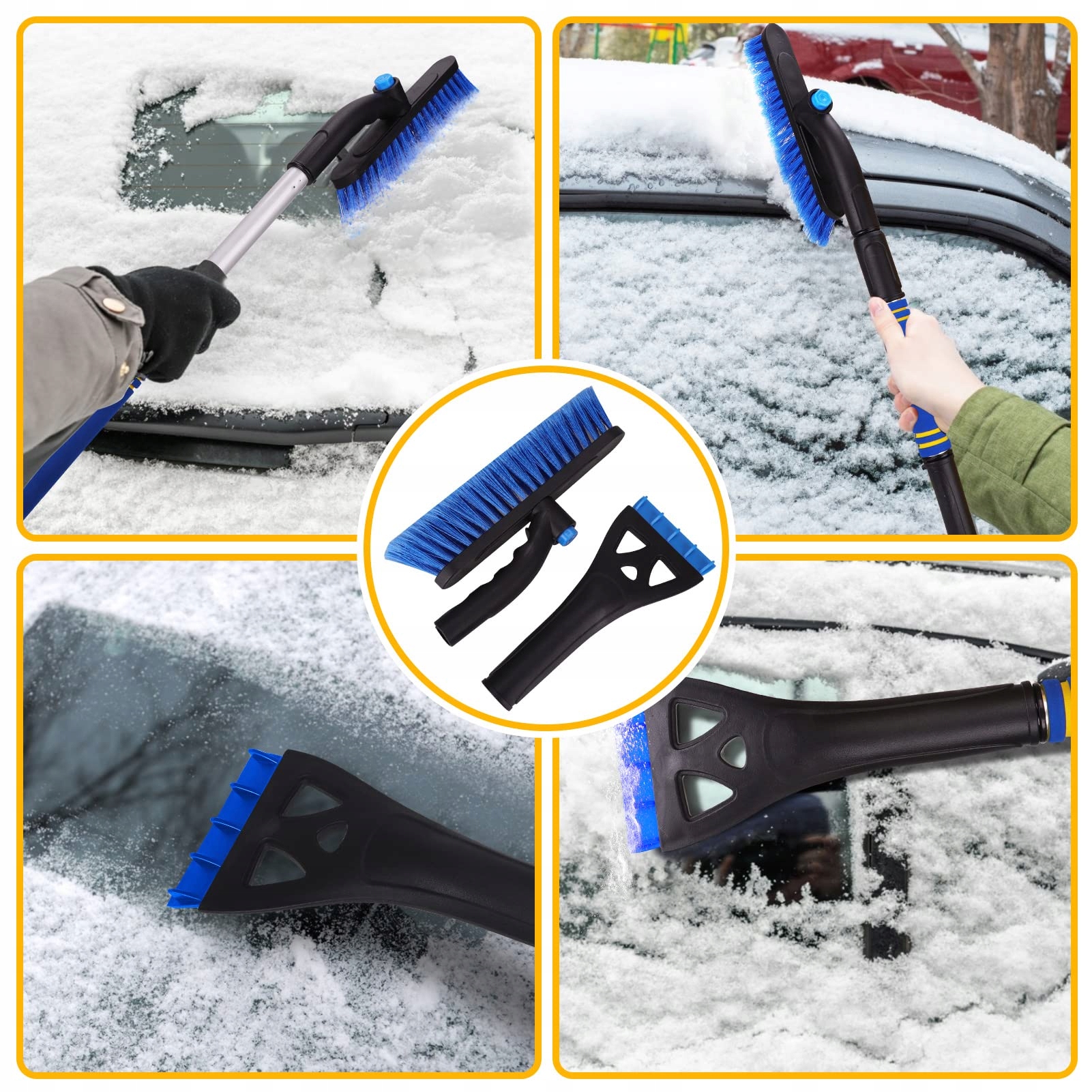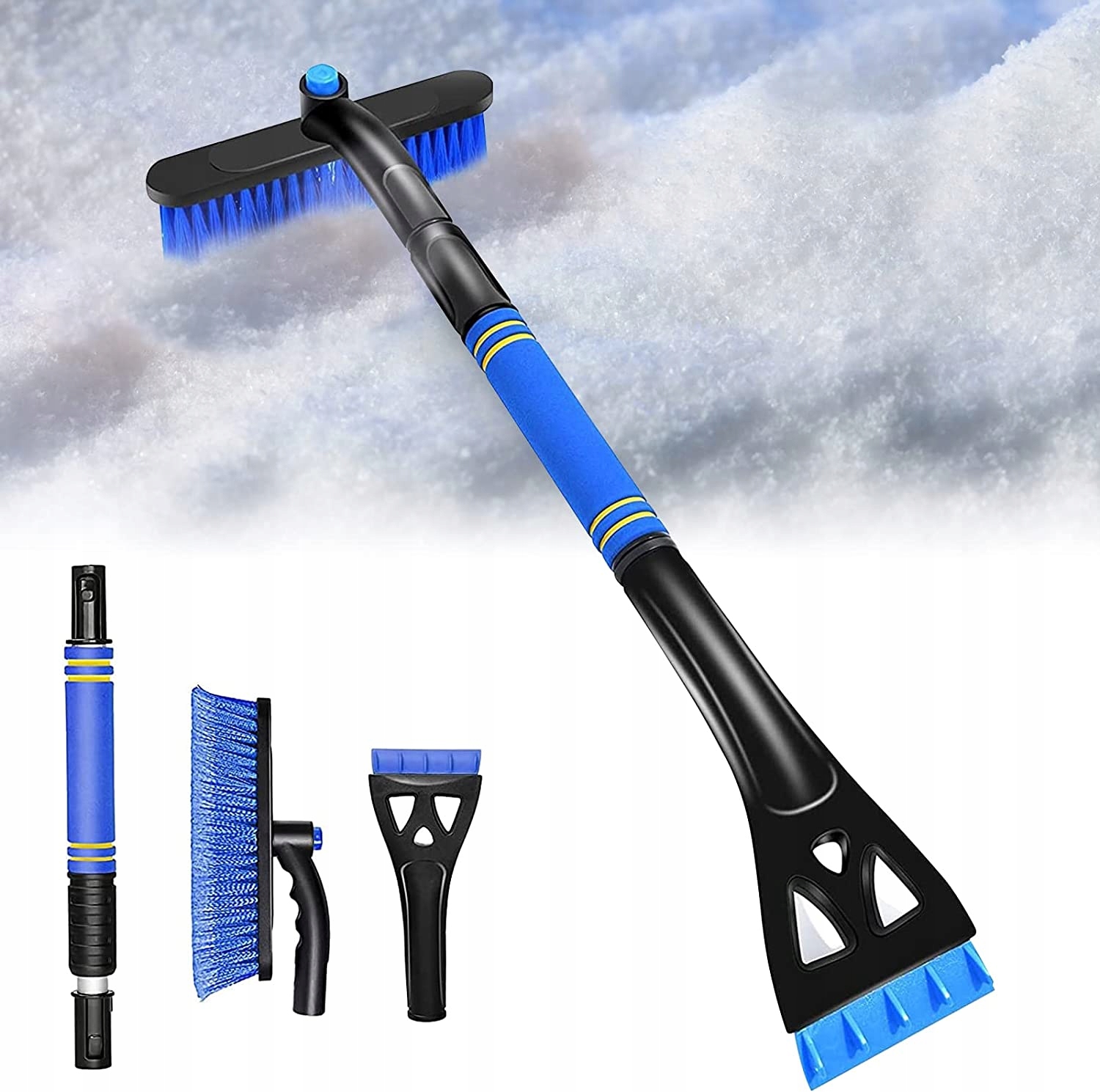 - ❄️Знімний скребок для льоду та щітка для снігу складаються з 3 частин (ручка, головка щітки, скребок для льоду).