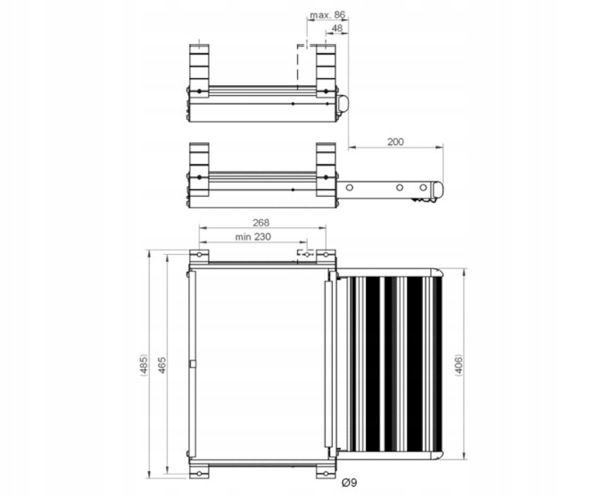 - Підніжка з рифленого анодованого алюмінію.