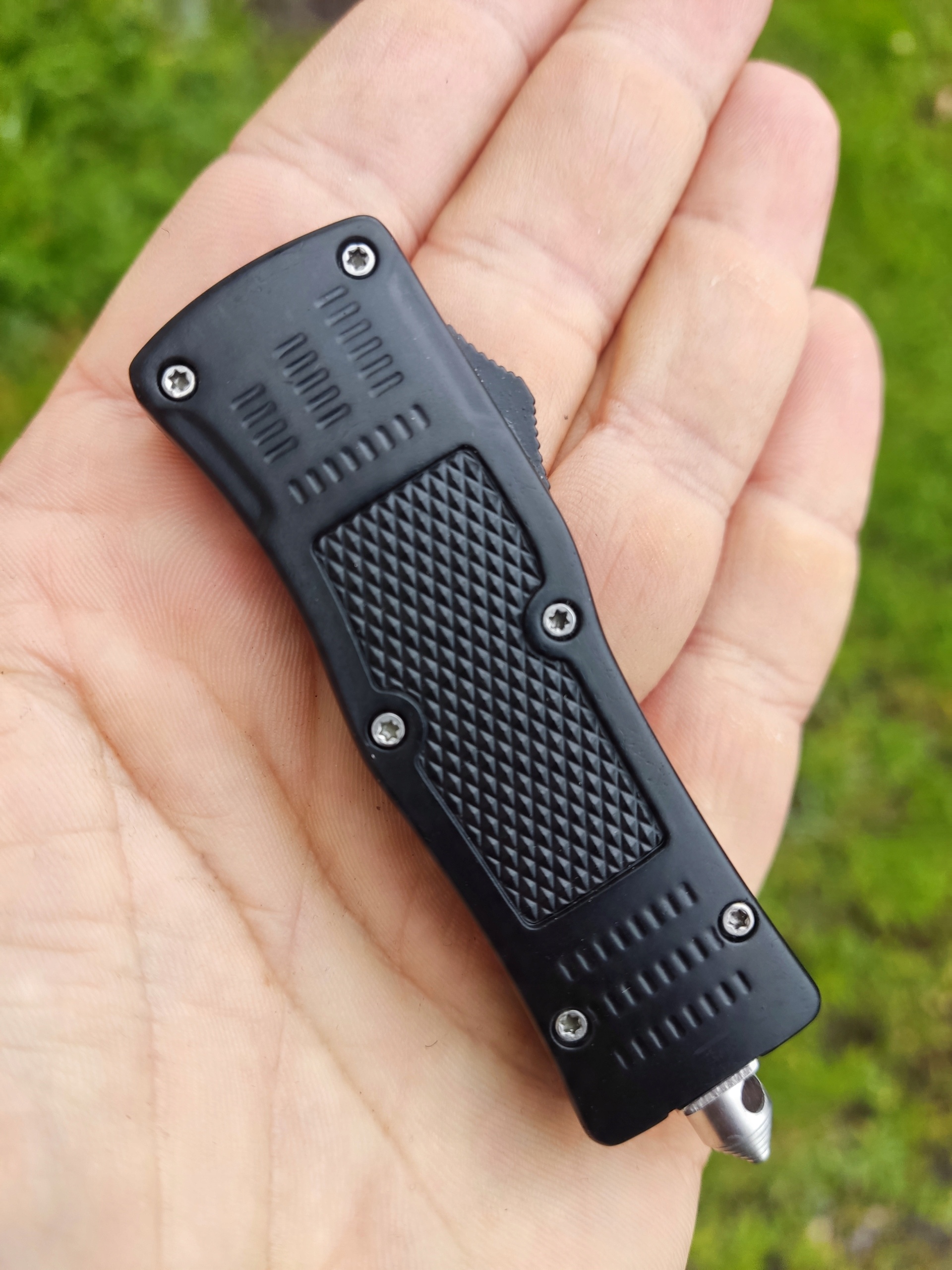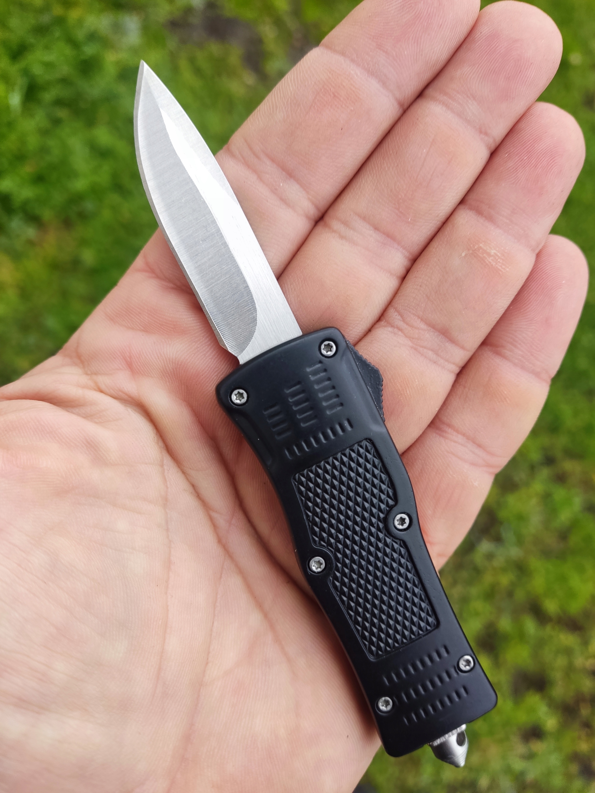 OTF лезо (з лезом, яке висувається спереду), яке автоматично висувається та втягується в металевій ручці