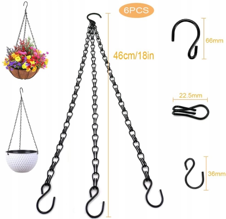Кожен ланцюг має практичні гачки, які дозволяють легко і стабільно підвісити горщик на ручці, промінь або гачку. вертикальний.