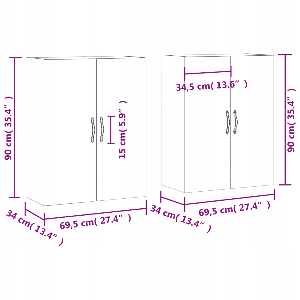 Висячі шафи, 2 шт., Білий, на базі деревини матеріал