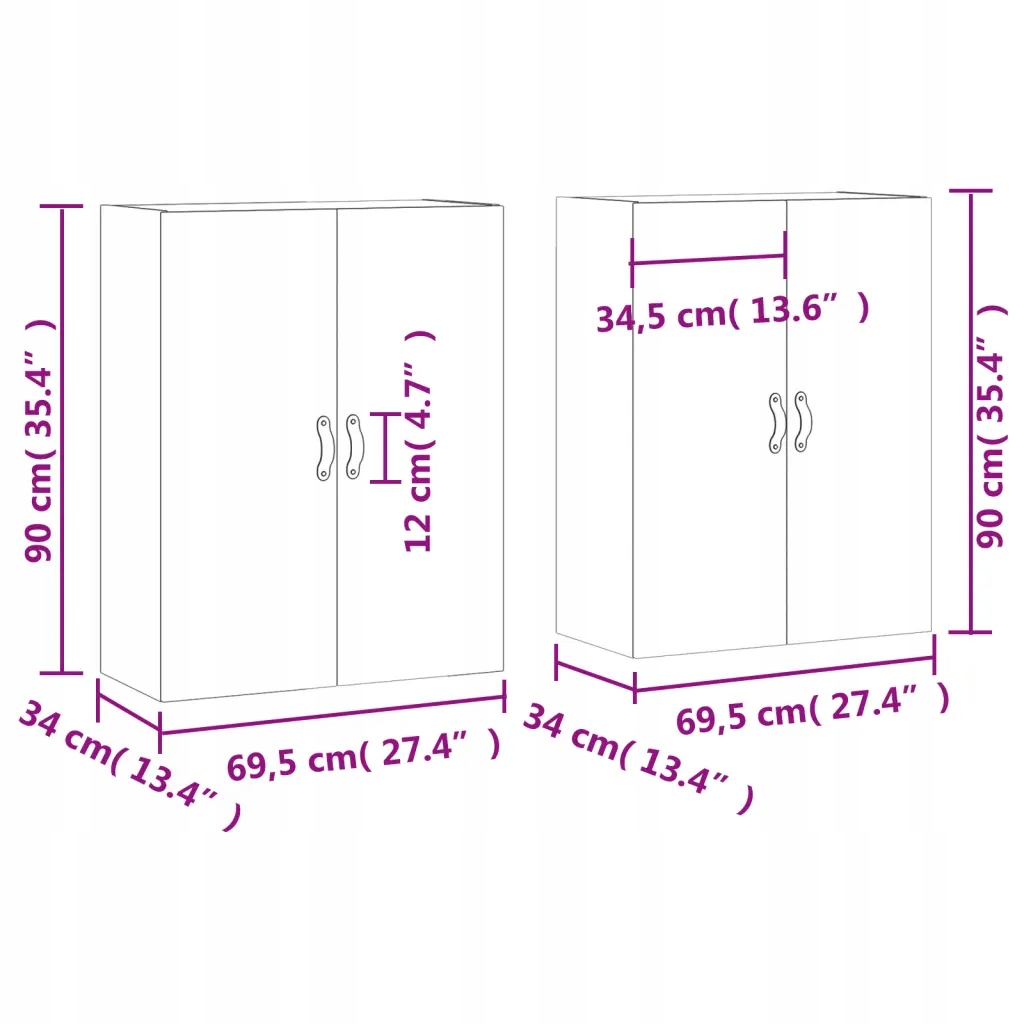 Висячі шафи, колір дуба Sonoma, 2 шт., 69.5x34x90 см