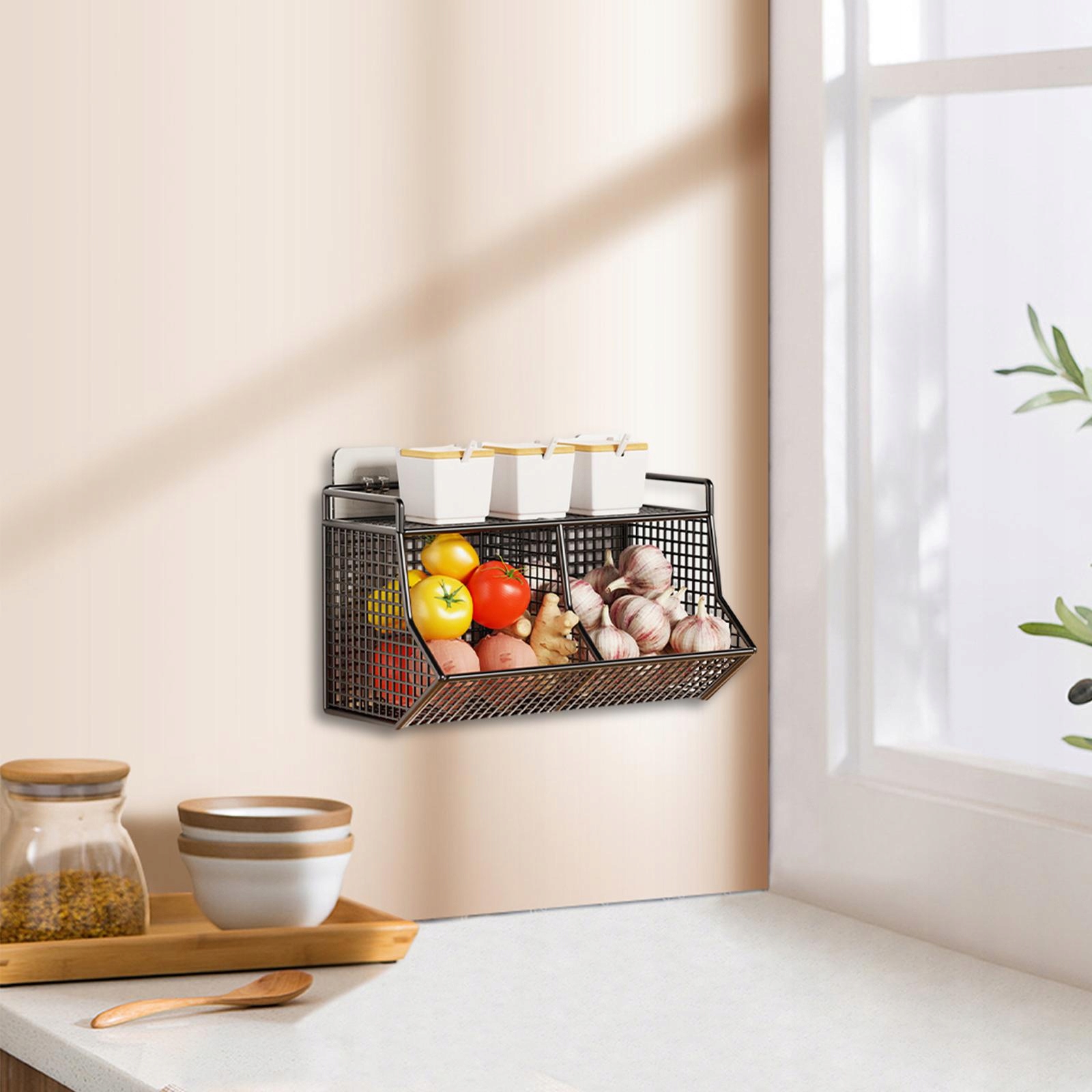 [універсальний кошик]: Організатор висячих стін ідеально підходить для зберігання багатьох предметів домашнього вжитку, таких як фрукти, овочі, пляшки з спеціями, іграшками, бальзамами, милами, інструментами, навіть офісними чи ремеслами. Квартири, квартири, літні будинки, кемпінгові транспортні засоби тощо. Завдяки цьому все добре видно і легко доступно.