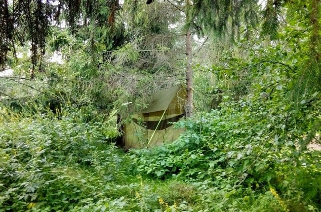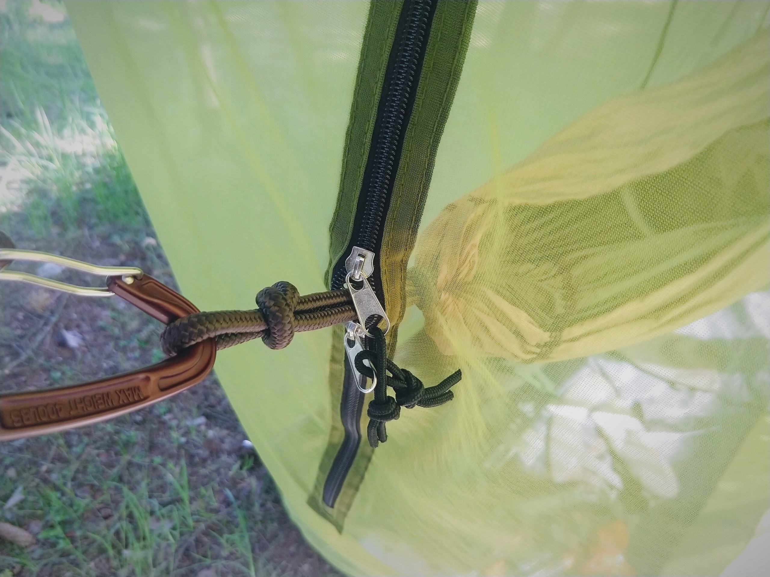 дозволяє повісити в ньому гамак, випустивши кабелі через отвори в стінах комарної сітки, які захищені стрічками на липучках. Лінії гамака вивозяться назовні через бічні зазори, захищені стрічками на липучках. Намет має два входи, закриті блискавками - кожен з двома обертовими повзунками.