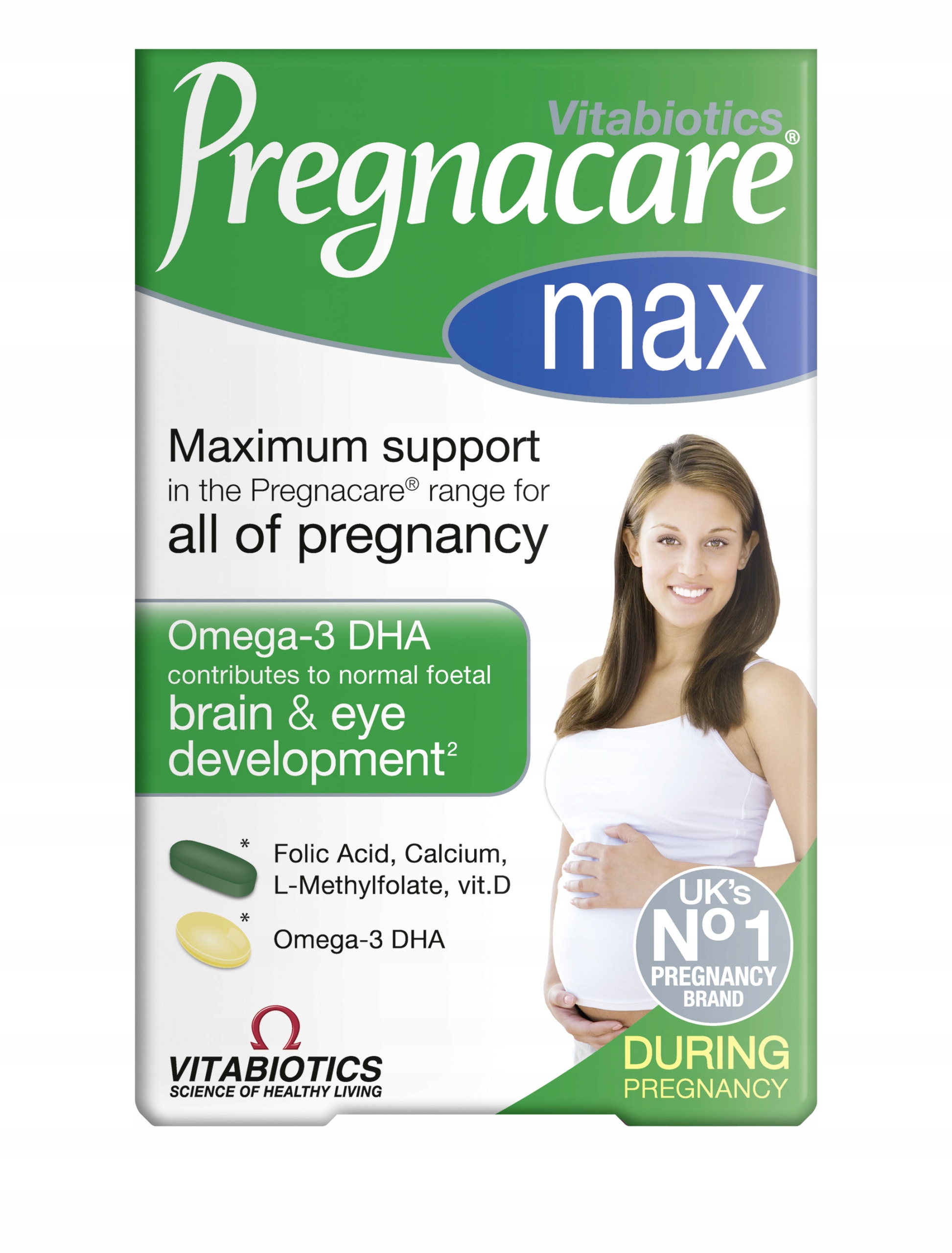 Vitabiotics Pregnacare Max 84 таблетки/капсули - це дієтична добавка, що містить комплекс вітамінів, мінералів, DHA та EPA. Удосконалена формула забезпечує поживні речовини, важливі під час вагітності. Містить 400 г фолієвої кислоти, включаючи спеціальну, легко біодоступну форму L-метилфолату, а також інші необхідні вітаміни та мінерали, включаючи 10 г вітаміну D, 500 мг кальцію та 300 мг DHA.