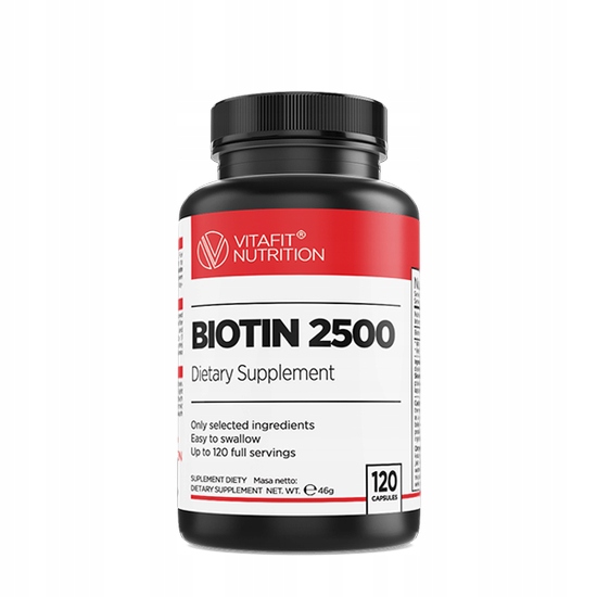 Біотин 2500 – це дієтична добавка, яка містить капсули, які легко проковтнути та добре засвоюються, кожна з яких містить до 2500 мкг біотину. Це кількість, що відповідає 5000% добової потреби і водночас максимальна безпечна доза, дозволена для харчової добавки, затверджена Головною санітарною інспекцією.