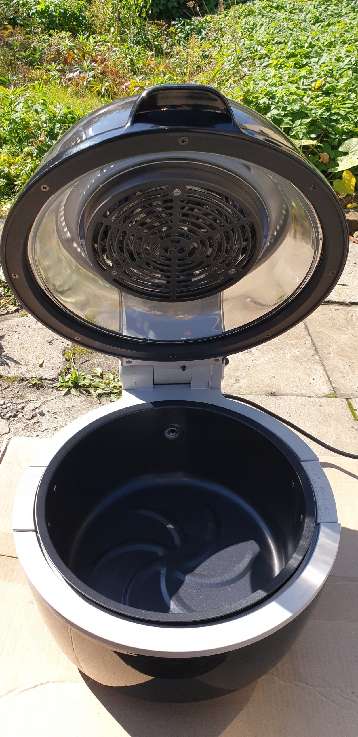 Стильний куполоподібний корпус з двостінного пластику оснащений 310 ° панорамне вікно, завдяки якому можна постійно контролювати процес приготування їжі. Антипригарне покриття контейнера вкладиша полегшує очищення пристрою, а вкладиш також можна мити в посудомийній машині.