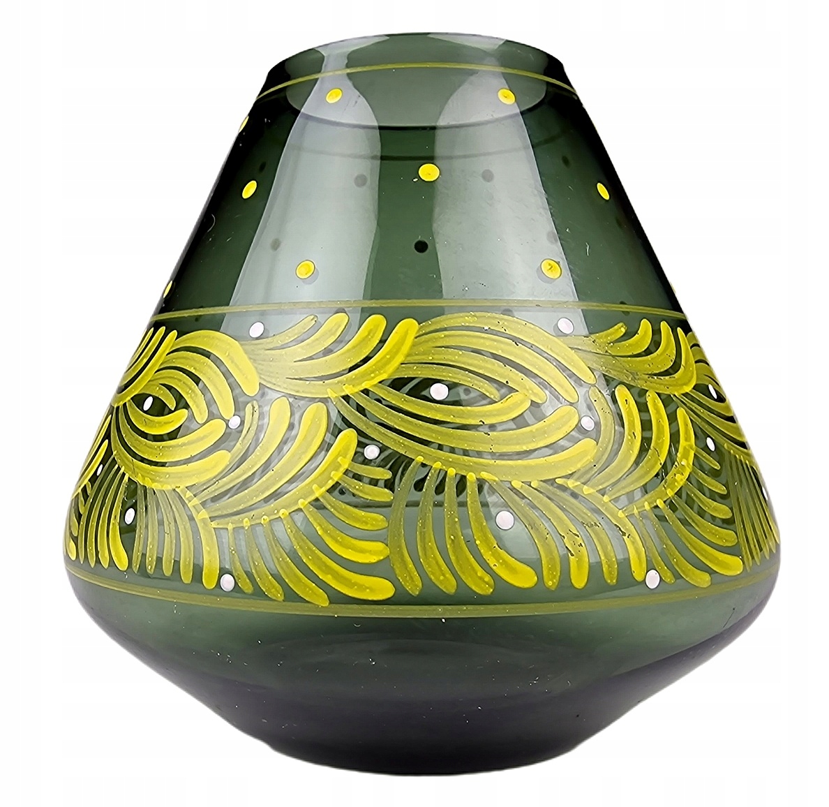 ВІТАЖНА СТАРА СКЛЯНА ВАЗА, РОЗПИСАНА ВРУЧНУ