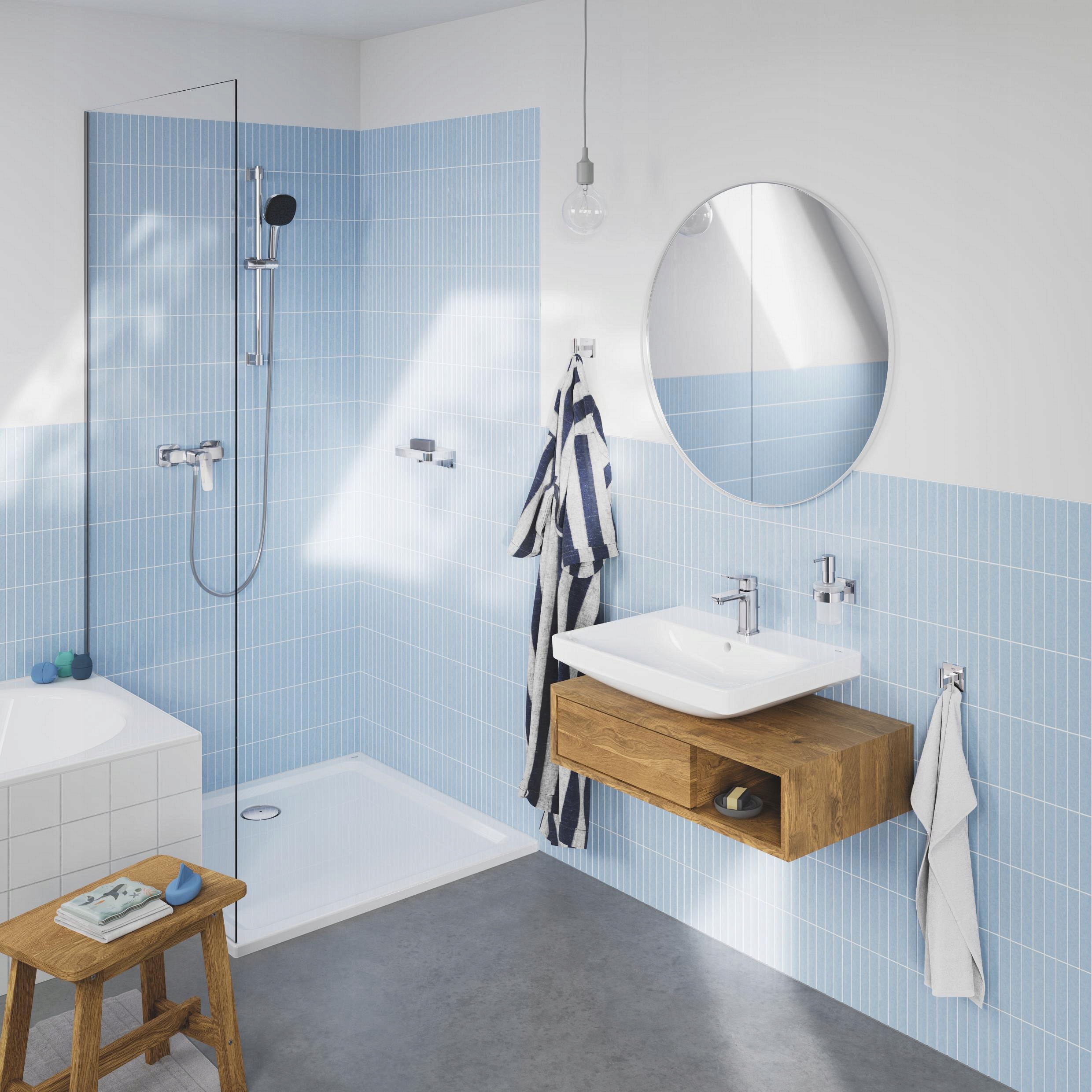 - Grohe FastFixation (adjustable height of the upper bound mounting) < shower (rotated and sliding)