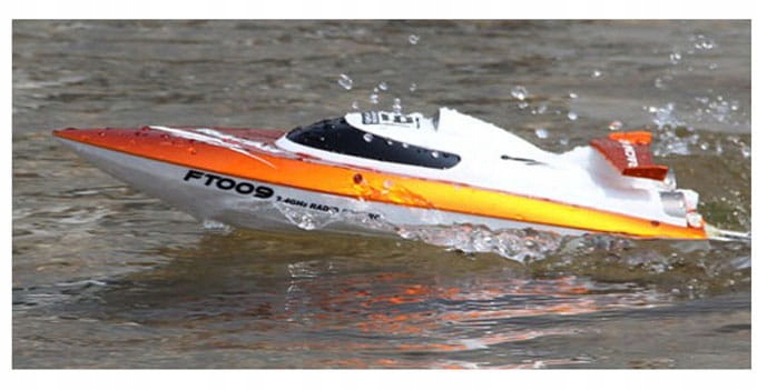 Модель FT009 — нова серед ударних іграшок. Відрізняється якісним і міцним виконанням. Дуже важливим елементом конструкції моделі є використовуваний в ній сервопривід, який дозволяє обертати катер без зниження швидкості (у попередніх моделях повороти залежали від зміни потужності двигуна). . Модель оснащена передавачем 24 ГГц (менше перешкод і більший діапазон).