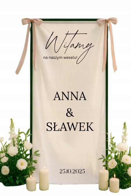 Вітальна дошка на полотні матеріал 63×210 елегантна прикраса для весілля