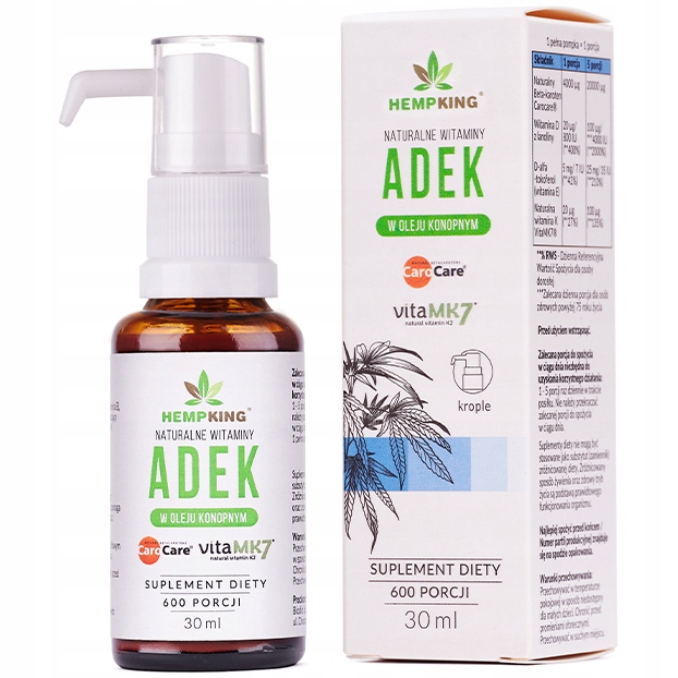 Інгредієнти – вітаміни ADEK в краплях в органічній конопляній олії – 30 мл HempKing