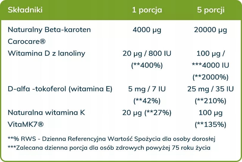 - запатентовані формули CaroCare®, EVnol™ і VitaMK7®