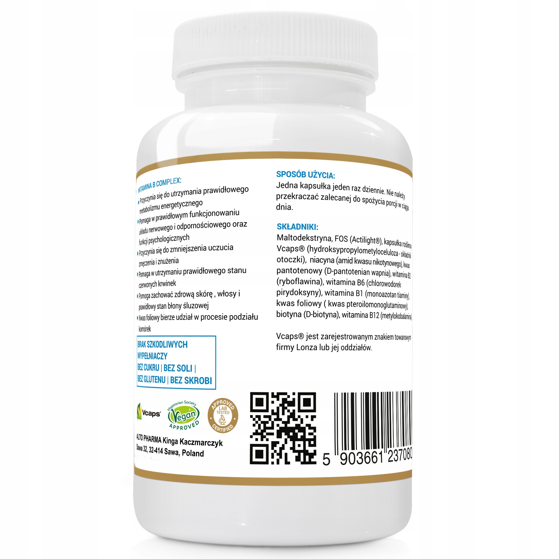 СКЛАД: мальтодекстрин, FOS (Actilight®), рослинна капсула Vcaps® (гідроксипропілметилцелюлоза - компонент оболонки), ніацин (нікотинамід), пантотенова кислота (кальцій D-пантотенат), вітамін B2 (рибофлавін), вітамін B6 (піридоксину гідрохлорид), вітамін B1 (тіаміну мононітрат), фолієва кислота (птероілмоноглутамінова кислота), біотин (D-біотин), вітамін B12 (метилкобаламін).