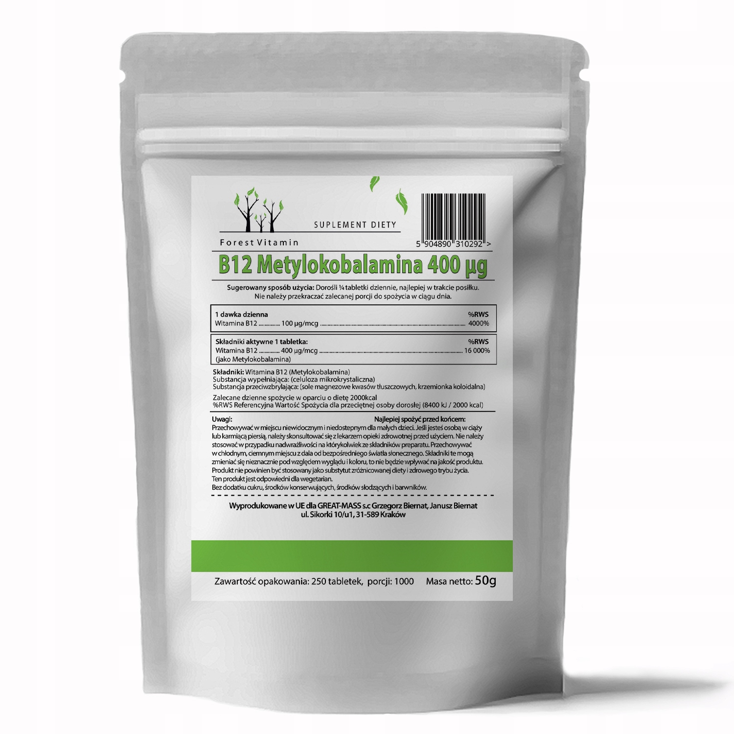 - Кожна таблетка містить 400 мкг вітаміну В12, що дозволяє легко і точно регулювати дозу до власних потреб.