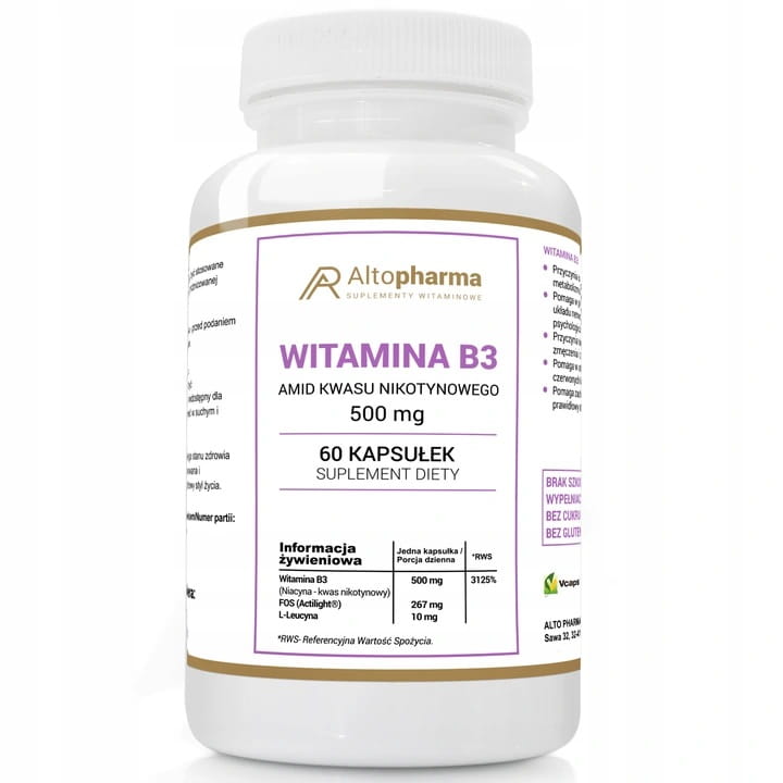 - ЩОДЕННА ПОРЦІЯ - Вітамін B3 (PP) від AltoPharma® – це дієтична добавка, яка забезпечує 500 мг вітаміну B3.
