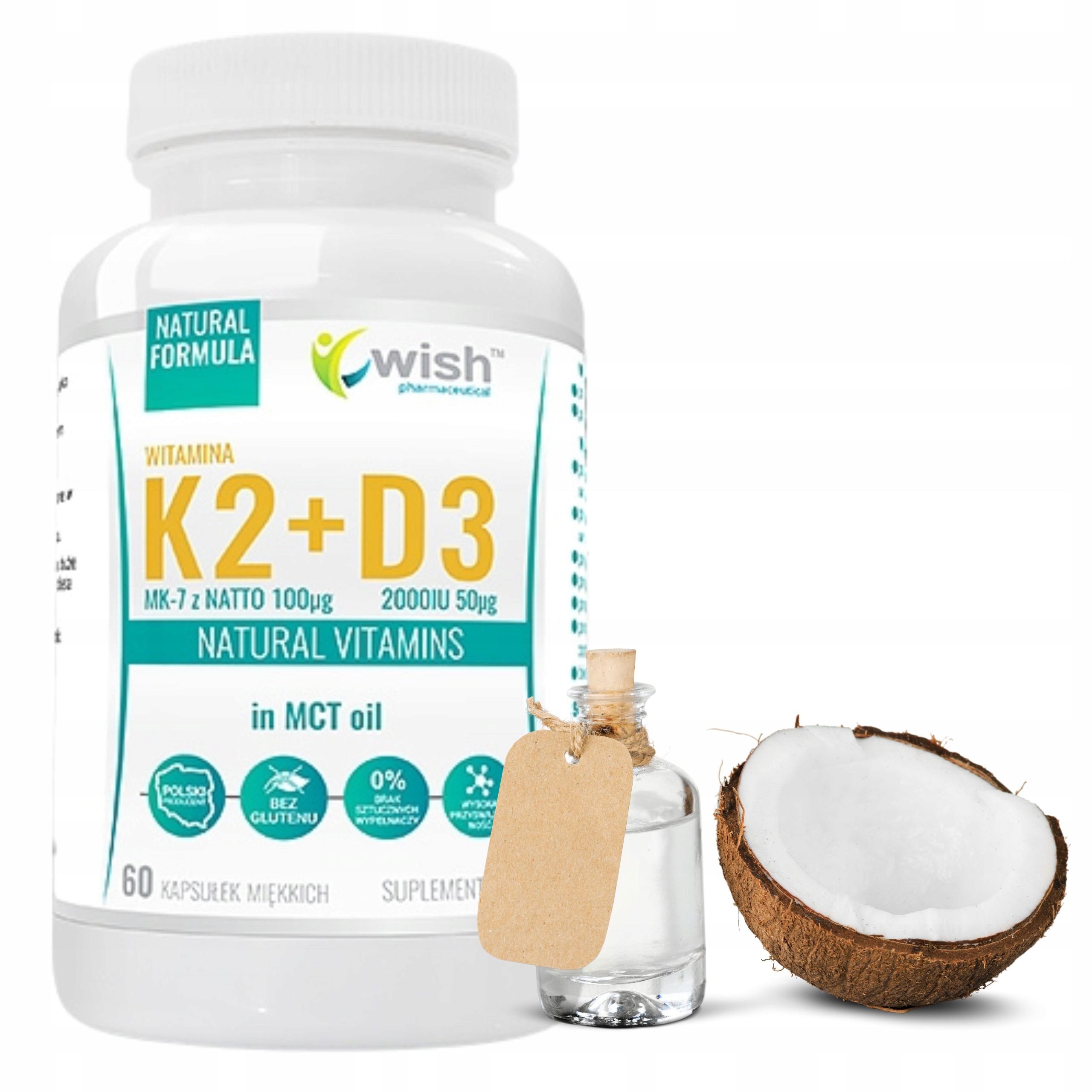Найкраща біодоступність – м’які капсули (softgel), наповнені кокосовою олією (MCT) – вітаміни K2 MK-7 і D3 від WISH Pharmaceutical® суспендовані в органічній кокосовій олії (MCT), щоб забезпечити їх найкраще транспортування, розчинність і максимальна біодоступність.