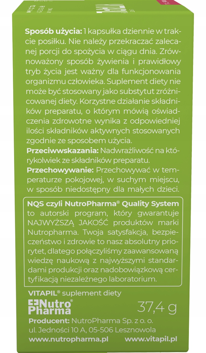 Оплачивая «Vitapil», вы можете быть уверены, что данное изделие из каталога «Кожа, волосы, ногти» будет доставлено из Польши и проверено на целостность. В цене товара, указанной на сайте, учтена доставка из Польши. Внимание!!! Товары для Евросоюза, согласно законодательству стран Евросоюза, могут отличаться упаковкой или наполнением.