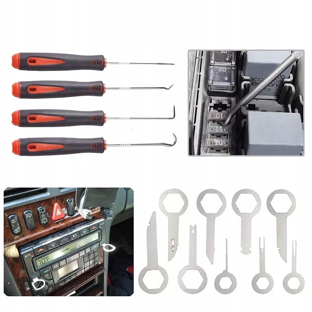 , який відповідає всім вимогам, пов'язаним з фінішем. Набір інструментів для демонтажу оббивки дверей ідеально підходить для монтажу або розбирання автомобілів аудіо/радіо/стереосистеми, дверних панелей, рейок, емблем, оббивки вікон або внутрішнього/зовнішнього ремонту транспортних засобів та оновлення меблів.
