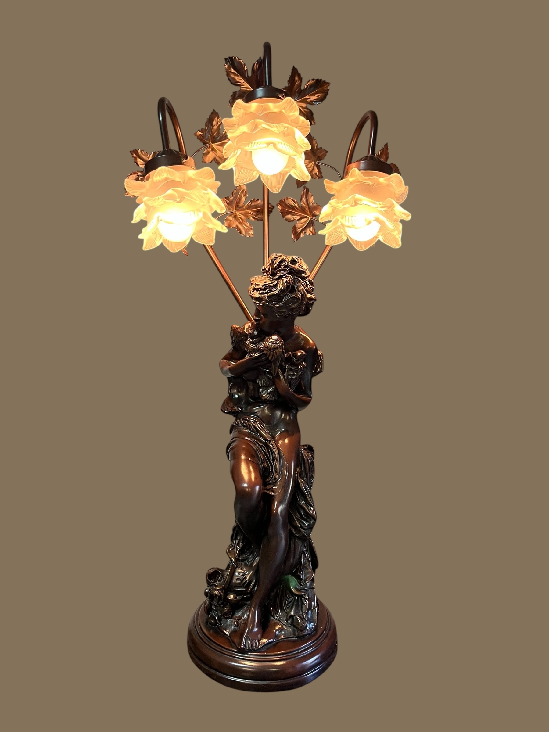 лампа з трьома скляними тюльпатами, електрично живленням.