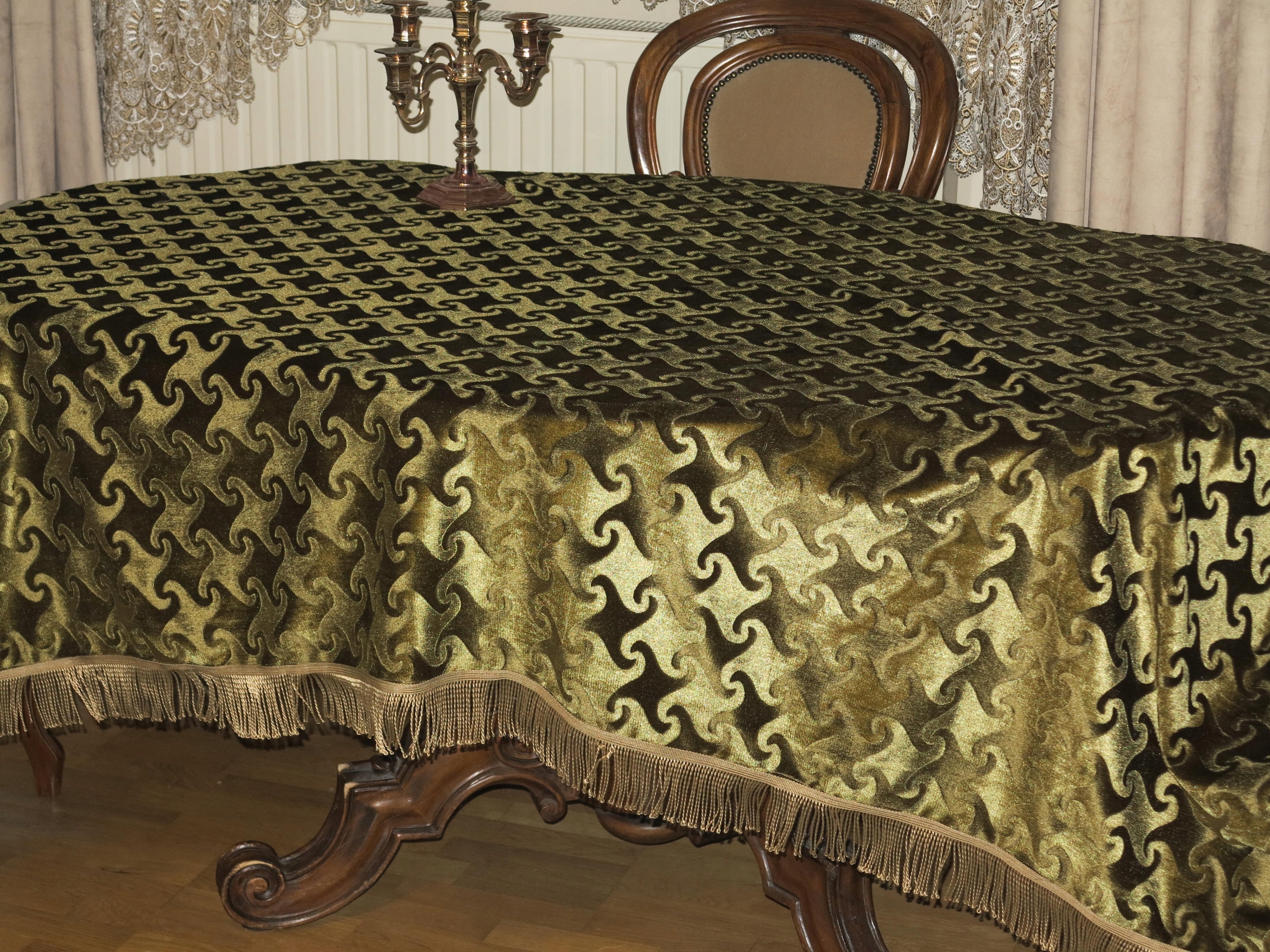Витончене величезне скатертичне велюстове золото 255/151+7