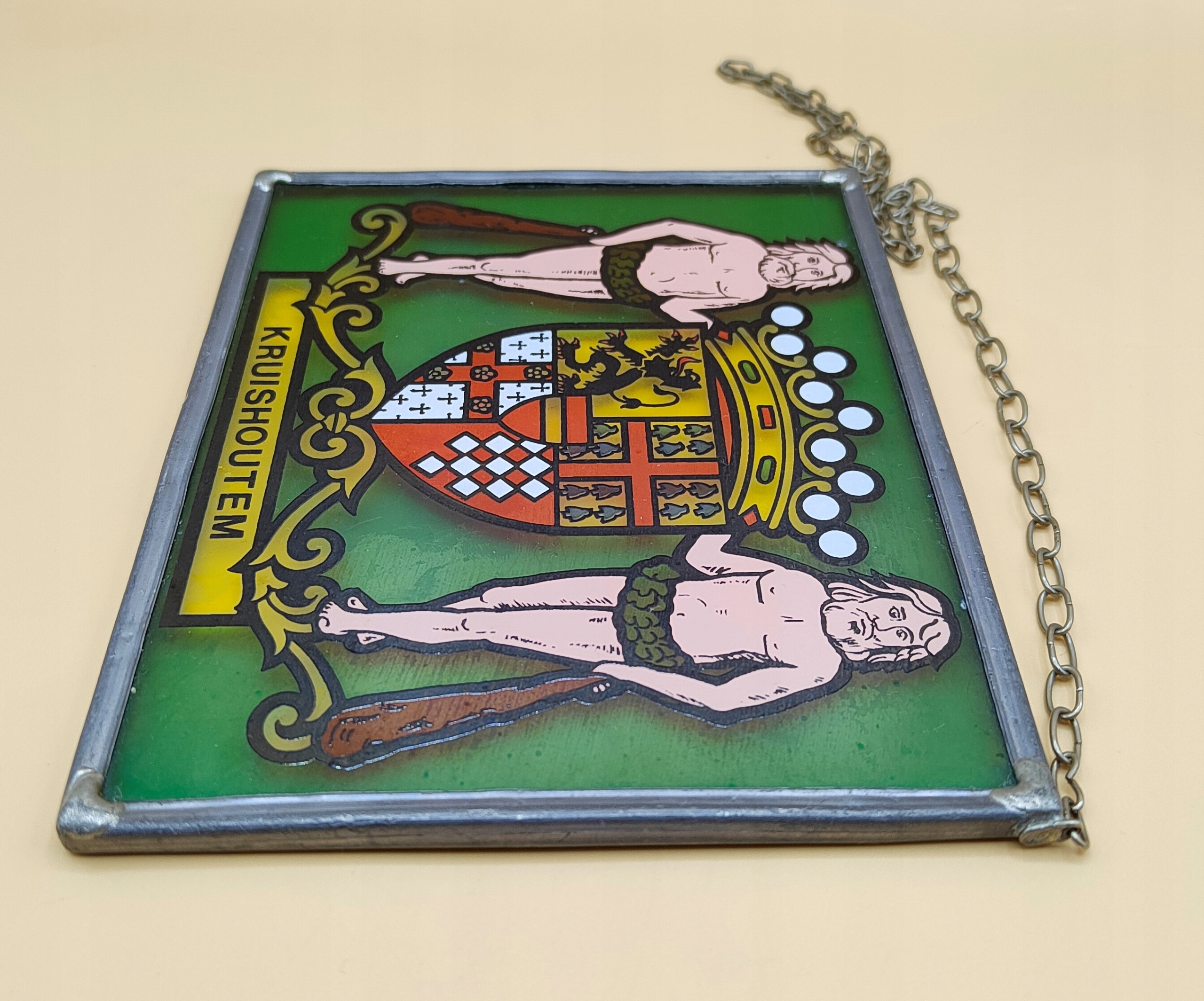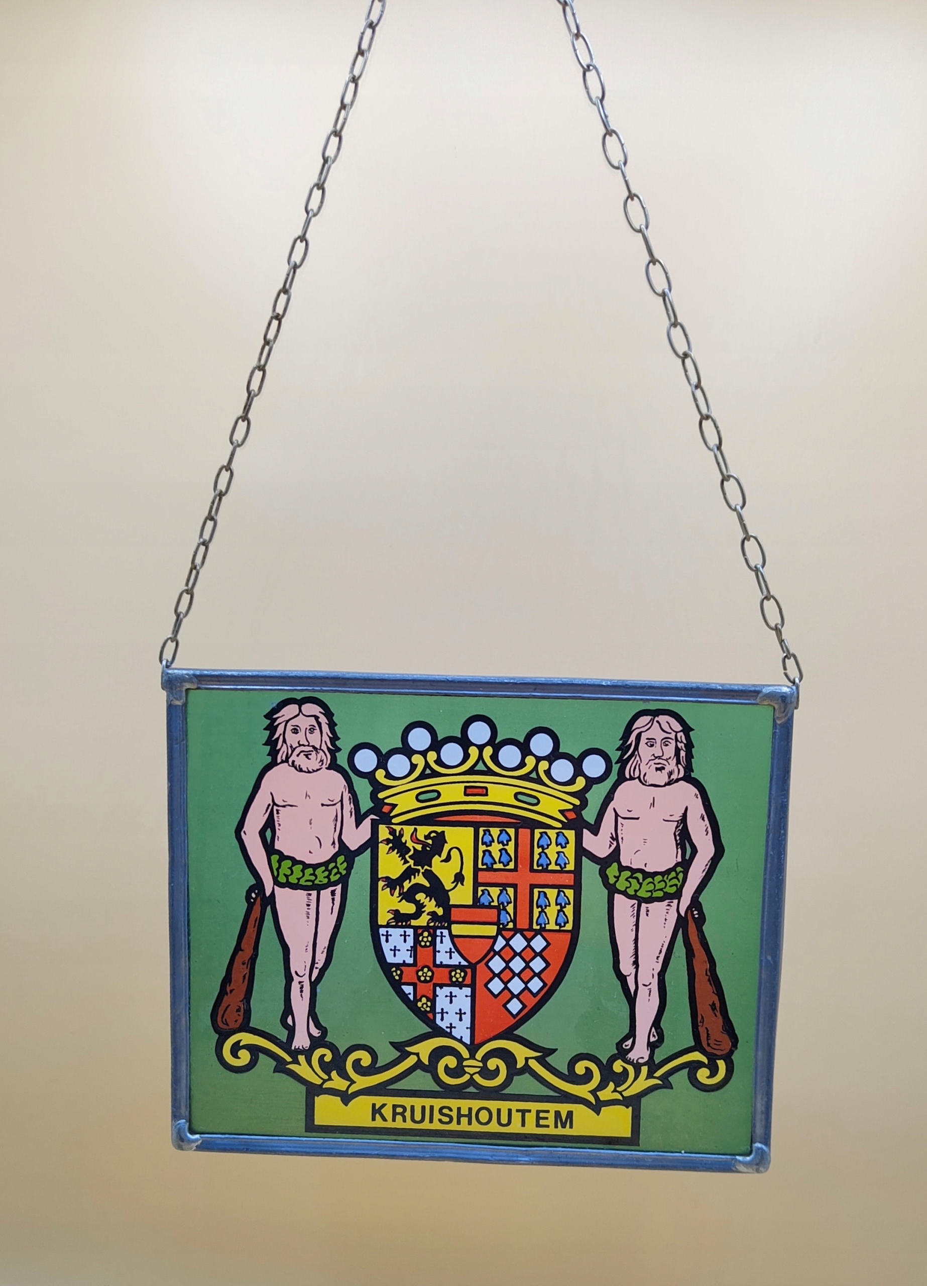 Вінтажний, вітражний старий сувенірний герб Kruishoutem, БЕЛЬГІЯ.