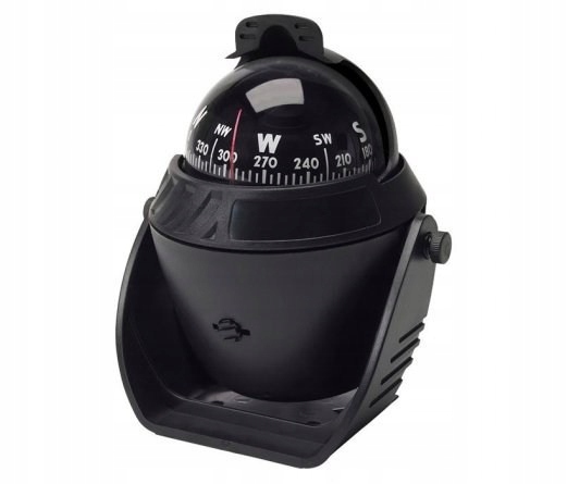Компас із поділкою 5°, сонцезахисним козирком, підсвічуванням і регульованим кріпленням з регулювальними гвинтами. З’єднувальні кабелі для освітлення включені.