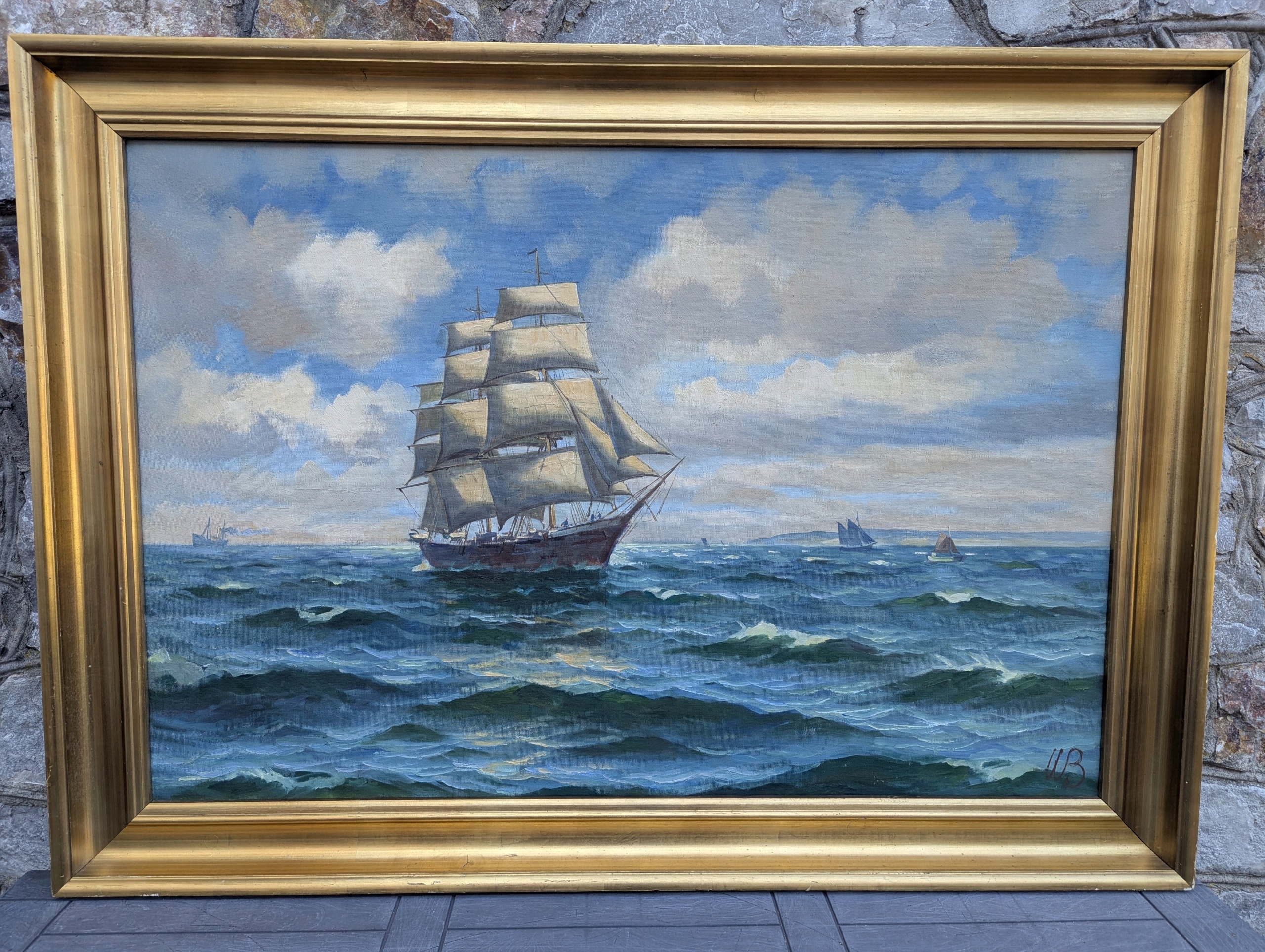 Вітрильний корабель підписав золоту рамку артвік