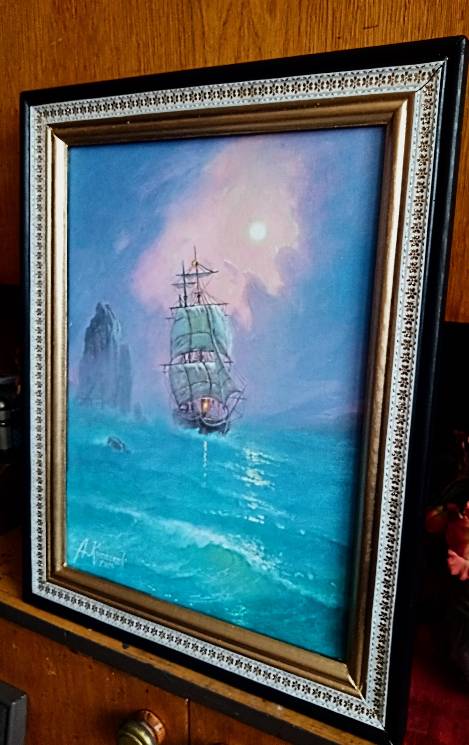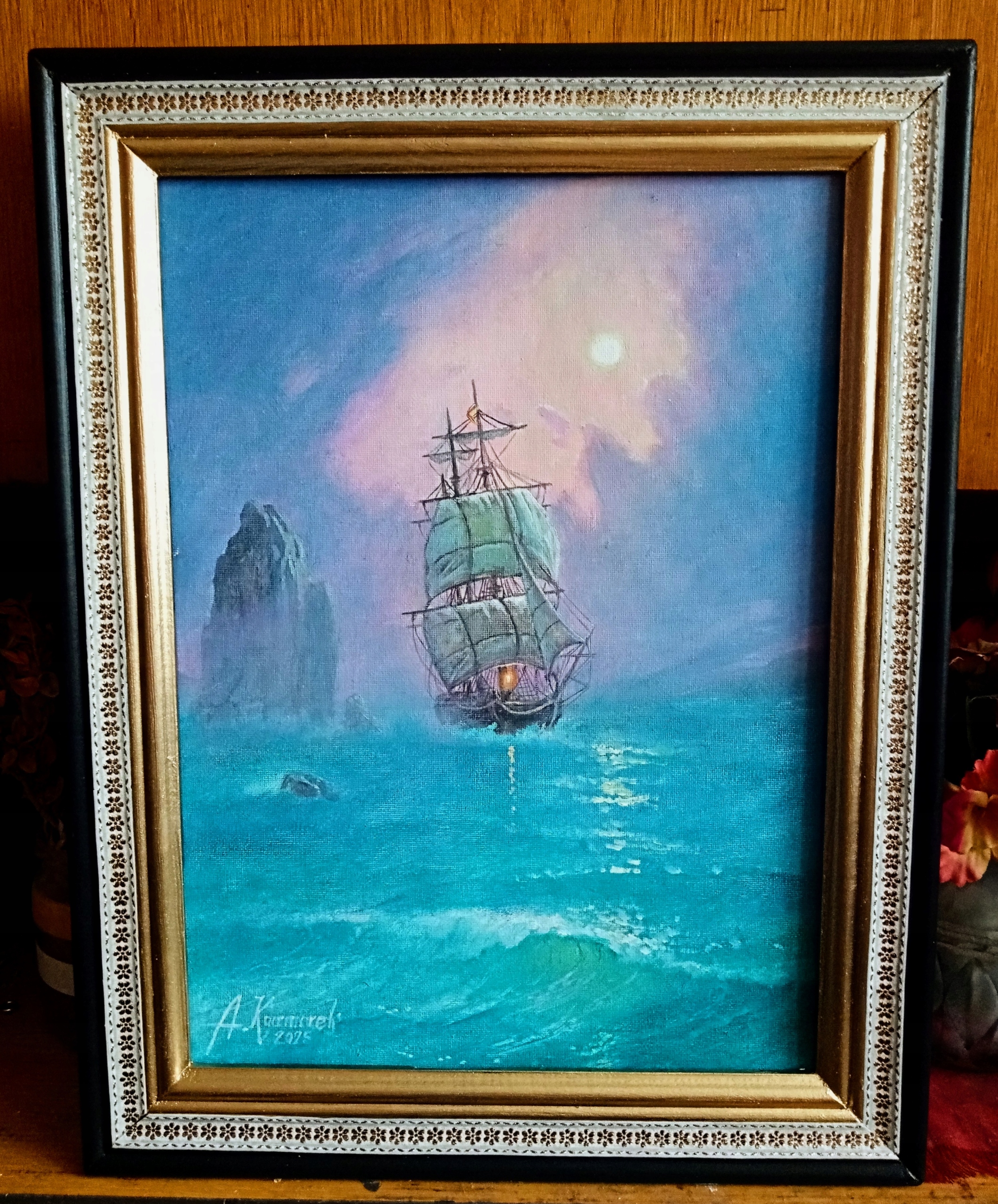 Вітрильний корабель у дощовому туманному маслі, полотна, 48х38